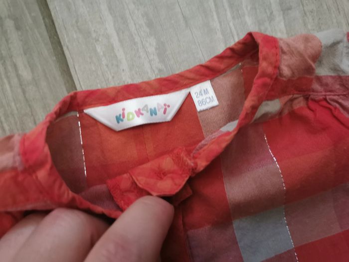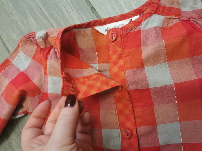 Chemisier à carreaux rouges,manches longues, marque Kidkanai, pour 24 mois (86 cm), sans étiquette de composition. Bon état, peluché devant, poids 46 g #chemisieracarreaux #chemisier24mois #kidkanai #chemisefille #chemisiermancheslongues