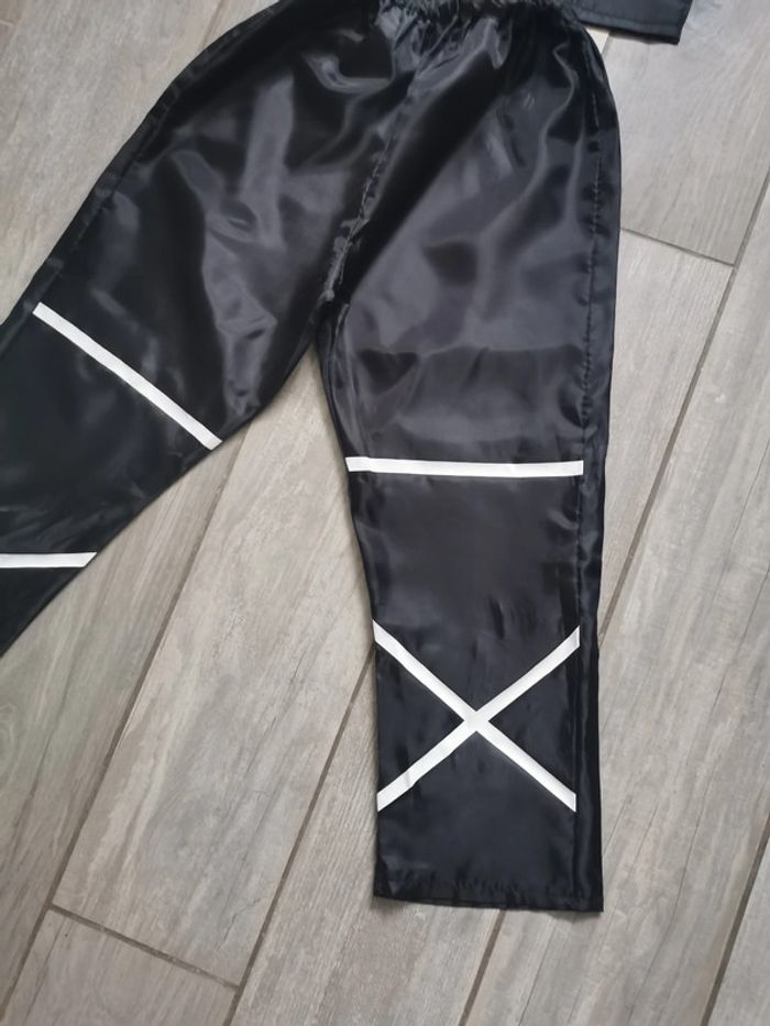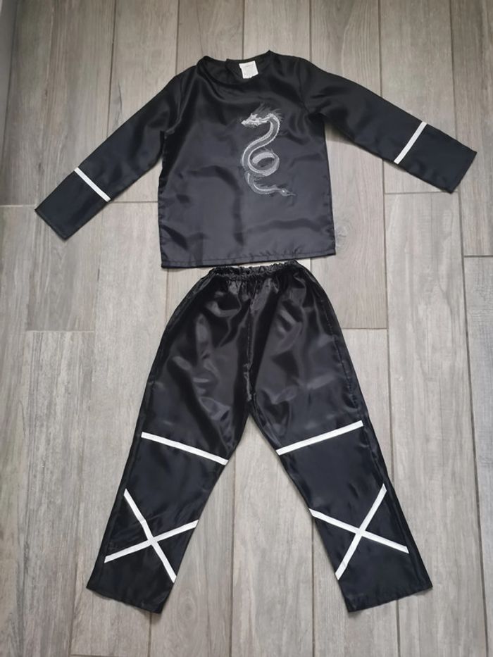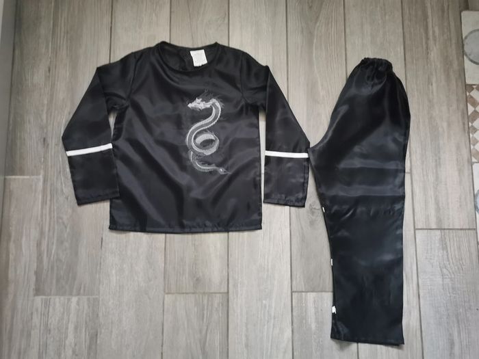 Déguisement Ninja enfant, en très bon état, en tissu fin type doublure, pour 110cm. Mesures haut manches longues avec le dragon : Longueur des manches depuis l’épaule : 42 cm Longueur des manches depuis l’aisselle : 35 cm Largeur dos : 35 cm Longueur : 48 cm Mesures pantalon ceinture élastique : Longueur jambe depuis la taille : 66 cm Longueur jambe depuis l’entrejambe : 45 cm Largeur taille non étiré : 20 cm Largeur hanches : 39 cm Mesures ceinture : Longueur : 80 cm Largeur : 5 cm Poids de l’ensemble 70 g #déguisementenfant #deguisementninja #deguisementninjaenfant #dragon