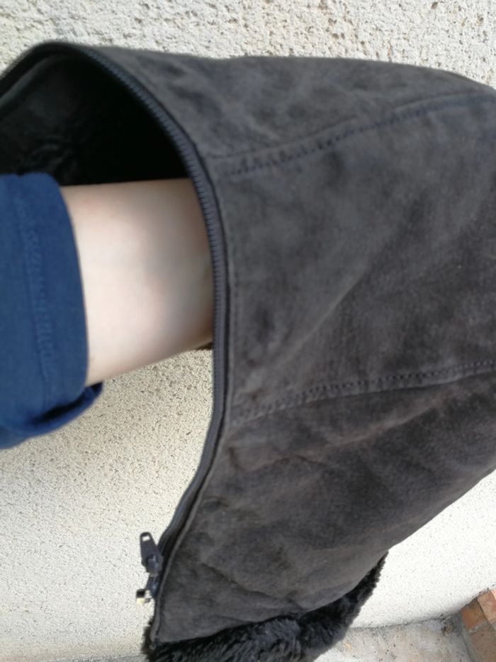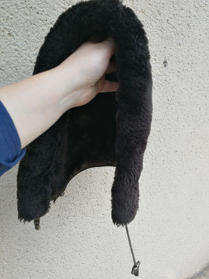 Capuche marron extérieur en daim, doublure et revers en fausse fourrure avec les lacets afin de pouvoir la resserrer et fixer à l’aide des embouts métalliques, fermeture à éclair pour pouvoir la fixer à un manteau/une veste. En très bon état. Mesures : Hauteur : 28 cm Profondeur : 23 cm Largeur : 10 cm Tour de la capuche devant : 72 cm Longueur de la fermeture éclair : 35,5 cm Poids : 300 g #capuchemarron #capuchemanteau #capuchehiver #capucheveste #capuchechaude #capuchefaussefourrure