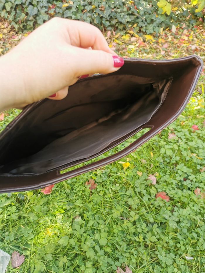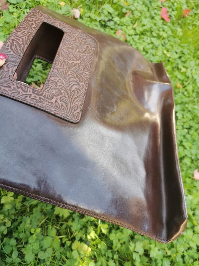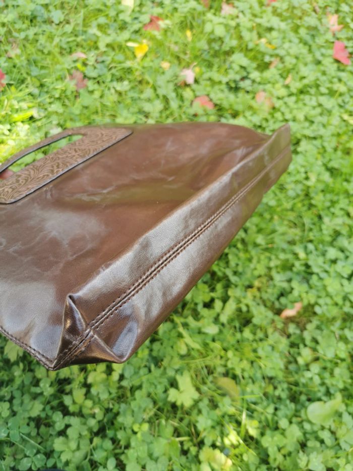 Sac à main marron en simili cuir poignées à motifs - photo numéro 5