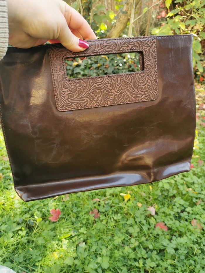 Sac à main marron en simili cuir poignées à motifs - photo numéro 1