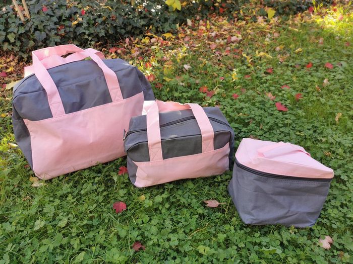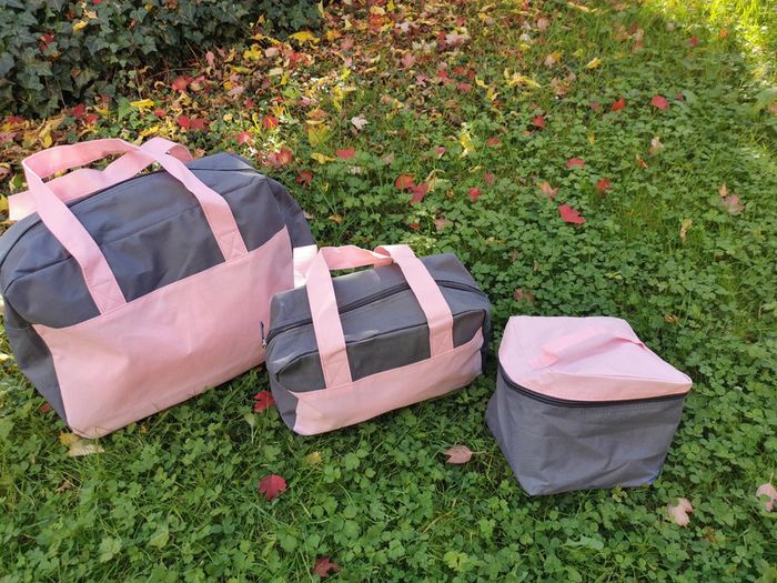 Lot de 3 sac rose et gris neufs, sans étiquette, comprends : Un petit sac de sport ou fourre tout en tissu fin avec deux poignées rose, se fermant par une fermeture éclair Dimensions : Hauteur : 27 cm Longueur : 36,5 cm Epaisseur : 13 cm Une trousse rectangulaire en tissu fin rose et gris avec deux poignées, se fermant par une fermeture éclair. Dimensions : Hauteur : 17 cm Longueur : 26,5 cm Epaisseur : 11 cm Une trousse carrée en tissu fin rose et gris, se fermant par une fermeture éclair avec une poignée. Dimensions : 15,5 cm Poids du lot 300 g #lotdesacs #sacsneufs #trousse #sacgris #sacrose