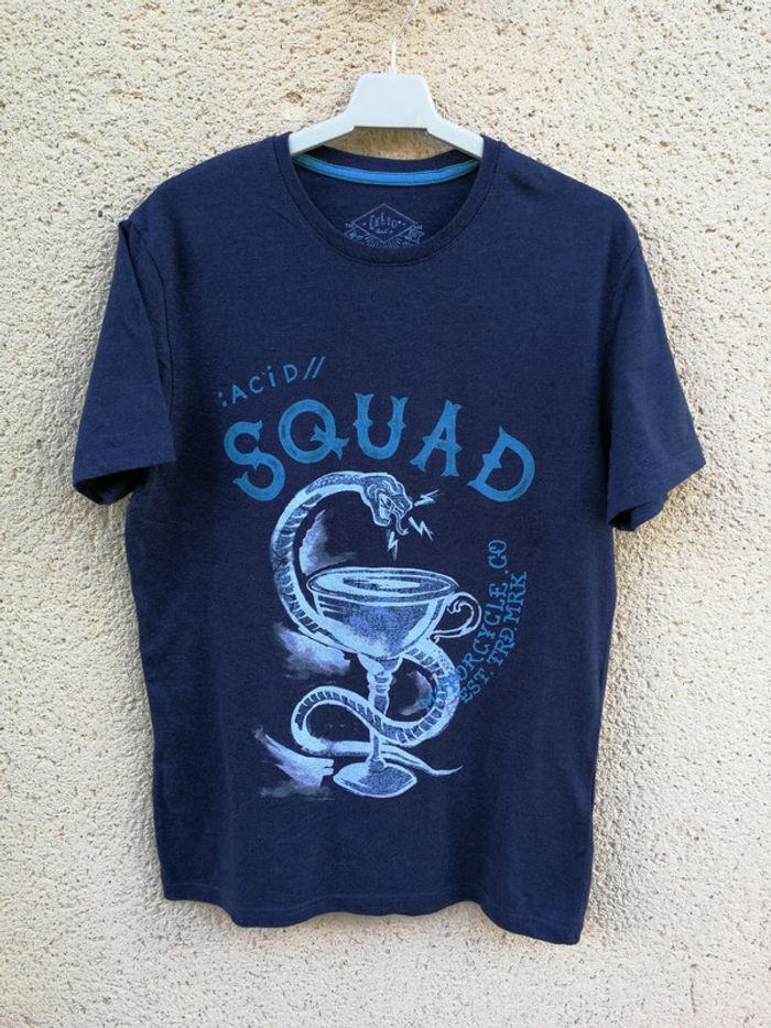 T-shirt bleu marine en coton, avec inscription Acid Squad devant, marque Celio, taille M. T-shirt à manches courtes, en bon état général. Mesures : Longueur : 72 cm Longueur manche : 20 cm Largeur dos : 39 cm Poids : 130 g #acidsquad #tshirtbleu #tshirtcelio #tshirtm #tshirtcoton #tshirttaillem #teeshirtbleu #teeshirtcoton #teeshirtcelio