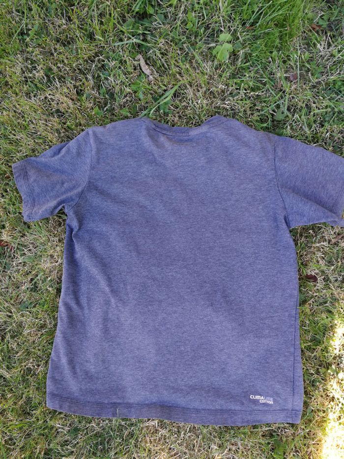T-shirt gris inscription Adidas enfant 12 ans, en coton 70% et polyester 30% (climalite cotton), en très bon état, juste une petite tache (décoloration, voir la photo) tee shirt à manches courtes. Mesures : Longueur : 57 cm Longueur manche : 18 cm Largeur dos : 37 cm Poids : 126 g #teeshirtgris #tshirtgris #adidas #teeshirtenfant #teeshirt12ans #tshirt12ans