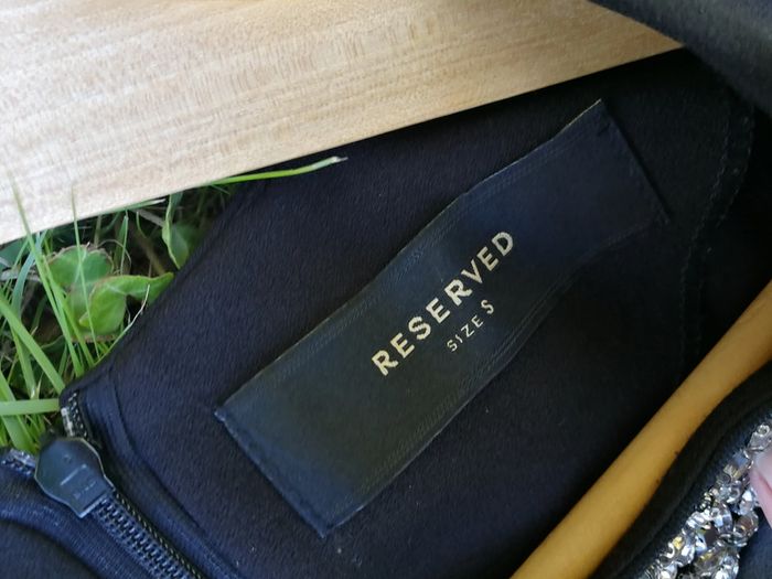 Robe noire manches courtes strass, légérement évasée, marque Reserved, taille S, composition : 96% polyester, 4% elasthanne. Robe est en très bon état, sombre et chic, fermeture éclair au dos, cintrée à la taille. Mesures: Longueur : 85 cm Longueur manche : 7 cm Largeur dos : 42 cm Poids : 300 g #robenoire #robestrass #robereserved #petiterobenoir #robeevasée #robecintrée #robetaille36