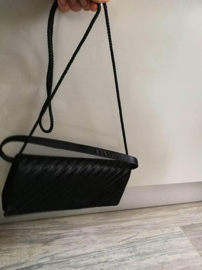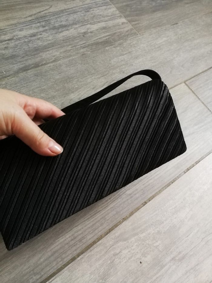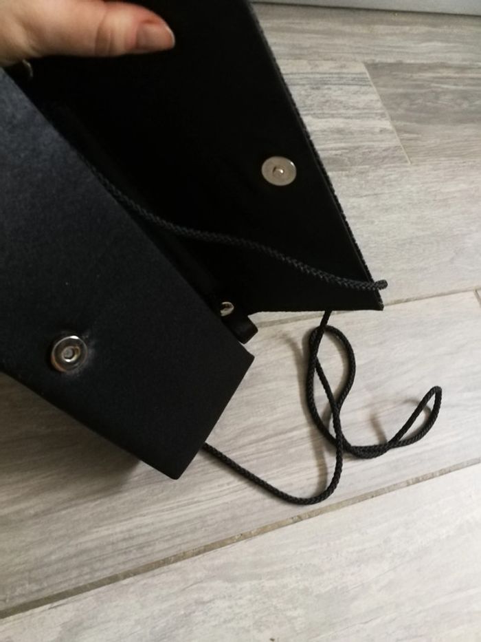 Sac clutch, sac de soirée noir en tissu satiné, en très bon état, comme neuf. Il se ferme par le bouton pression, a une poignée et une bandoulière corde, à l'intérieur une petite poche. Dimensions : Hauteur : 10 cm Largeur : 24 cm Profondeur : 4 cm Poids : 190 g #sacclutch #sacdesoiree #sacnoir #sacsatine #pochettesoiree