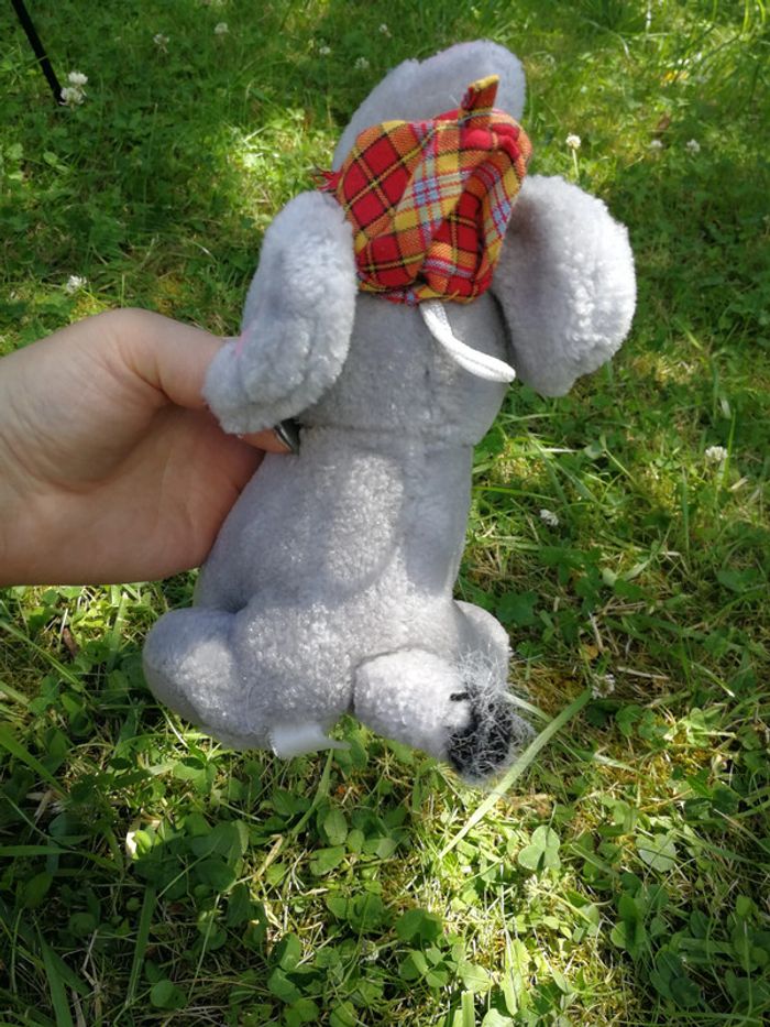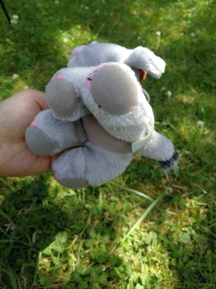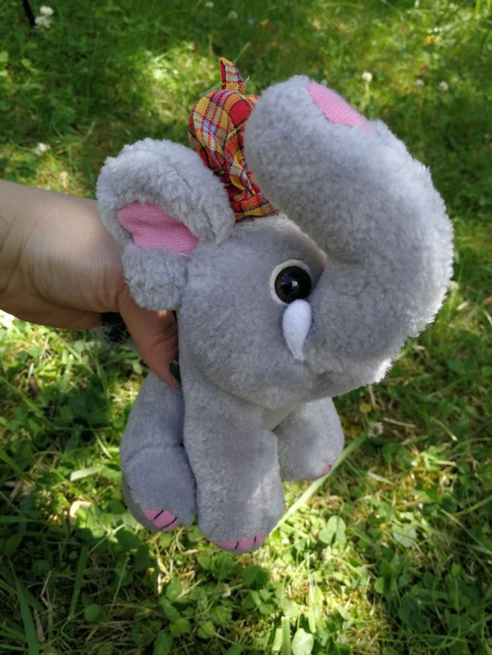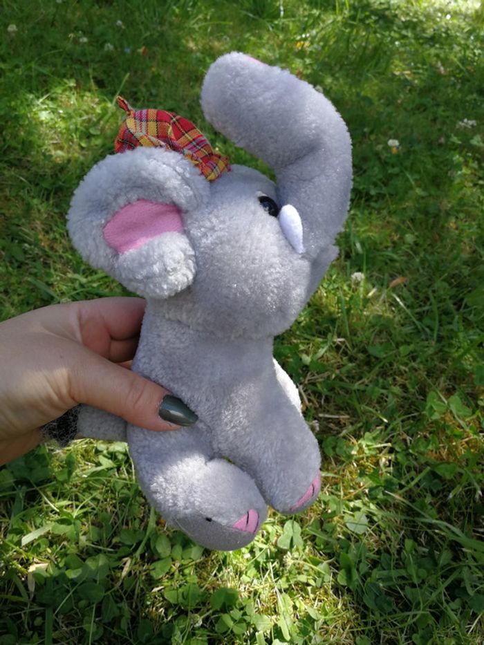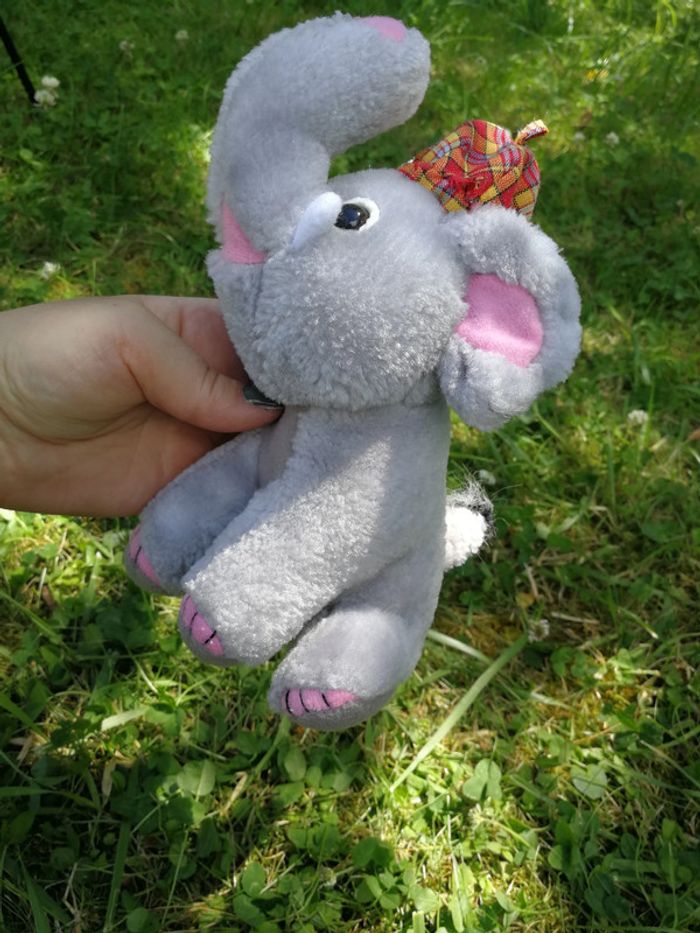 Peluche éléphant avec le bonnet et une attache pour le suspendre, il est en bon état géénral, la queue est un peu abîmée. La peluche mesure 20 cm et pèse 80 g #pelucheelephant #peluche #elephant #éméphant #elephantpeluche