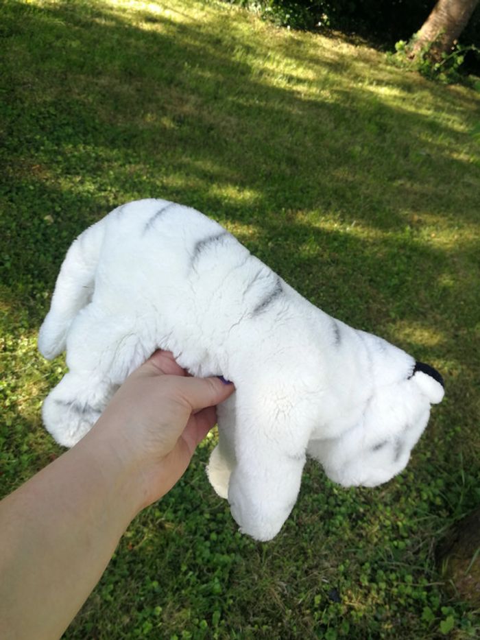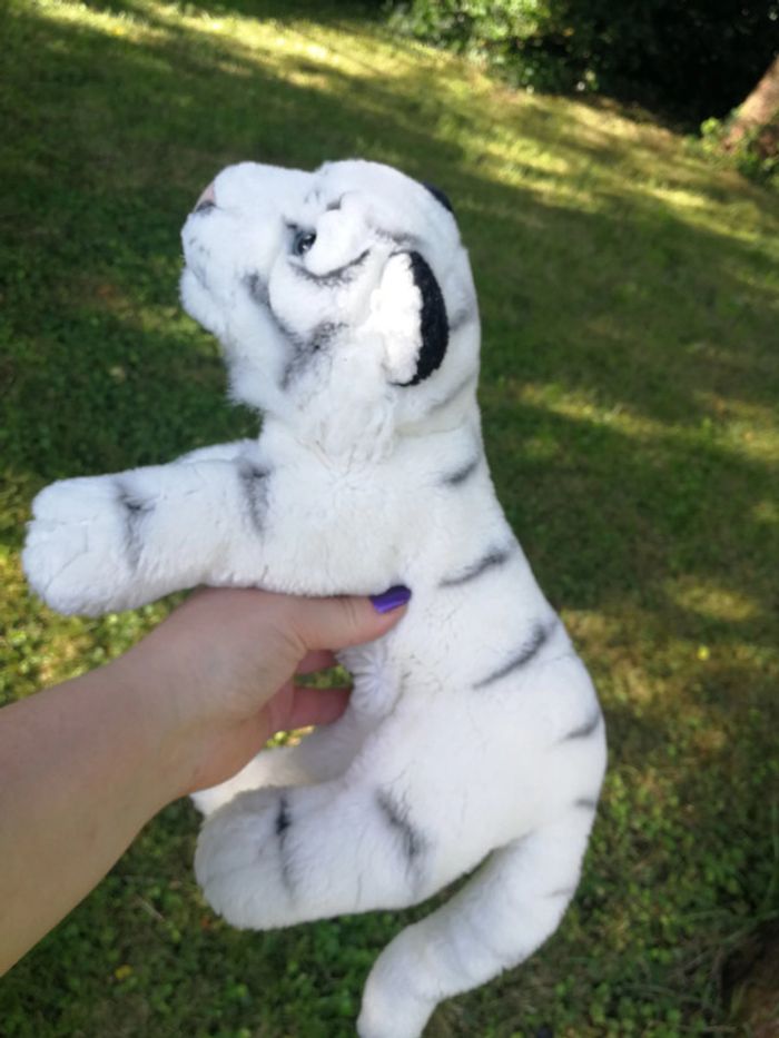 Peluche tigre blanc 30 cm, bon état général, il n'a plus de moustaches et les yeux sont rayés, son poids fait 200 g #pelucheblanche #peluchetigre #pelouchetigreblanc #peluchetigre