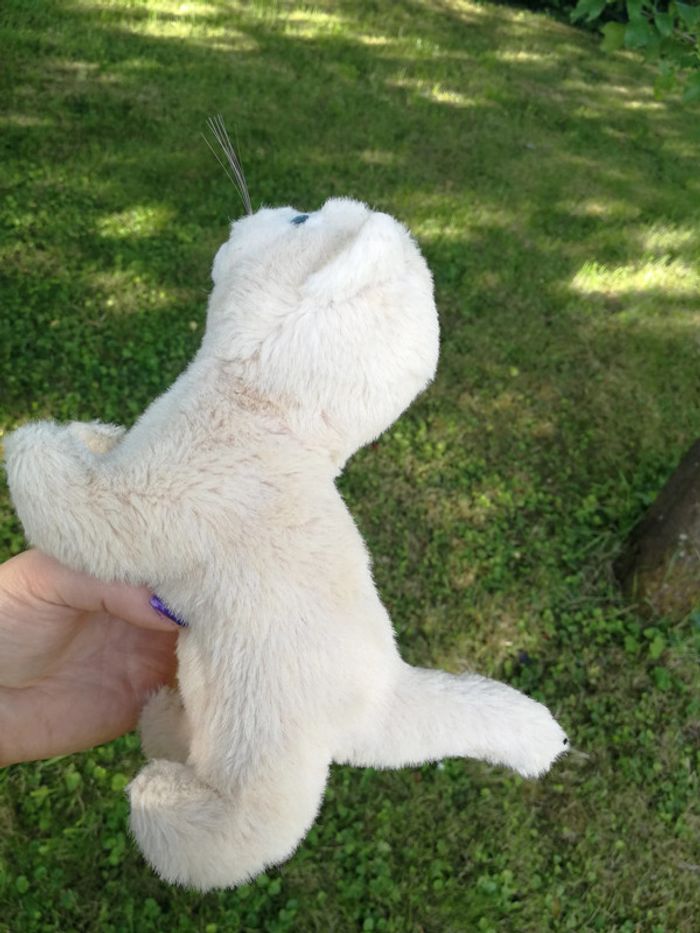 Peluche chat beige yeux bleus, doux, en très bon état, comme neuf, sa taille fait 20 cm et son poids 105 g #chatbeige #chatyeuxbleus #peluchechat #peluchechatbeige #doudouchat
