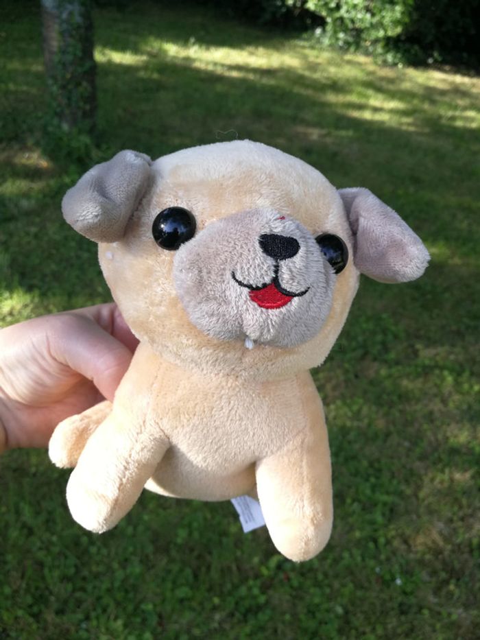 Peluche chien carlin beige, en très bon état, comme neuf avec une boucle pour l'accrocher. La peluche mesure 17 cm et pèse 70 g #chiencarlin #peluchechien #petitepeluche #pelucheneuve