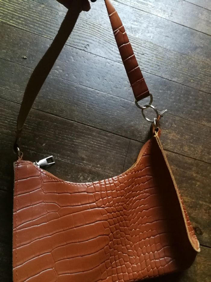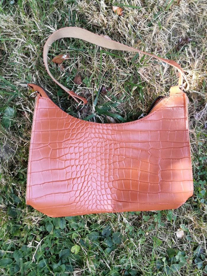 Sac à main couleur camel (beige/maron) structuré avec une petite anse, le sac se ferme par la fermeture éclair et est synthétique, en très bon état. Il manqué juste un anneau à l'anse que j'ai réparé à ma manière. Dimensions : Hauteur : 14 cm Longueur : 22,5 cm Profondeur : 4 cm Longueur de l'anse : 40 cm Poids : 85 cm #sacamain #sacamaincamel #sacamainbeige #sacamainsynthetique #petitsacamain