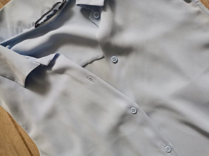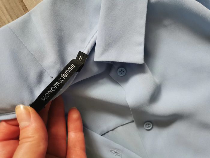 Haut chemisier bleu ciel (malhereusemnt la couleur n'est pas la même sur les photos, elle beaucoup plus belle, fraiche) sans manches, à boutons, la longueur inégale, en très bon état, en matière fluide et agréable, 100 % polyester, un peu transparente, marque Monoprix femme, taille 38. Mesures: Longueur dos : 66 cm Longueur devant : 51 cm Largeur à plat : 47 cm Poids : 110 g #chemisierbleu #hautbleu #hautbleupolyester #hautbleufluide #chemisierfluide #chemisiersansmanches #chemisiertaille38