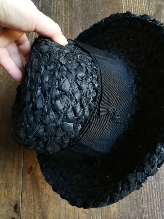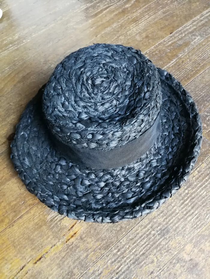 Chapeau de paille noir mat, en très bon état, il manque un détail décousu sur le ruban, petite taille, assez haut. Consultez les mesures ci dessous : Hauteur : 10nj gb cm Diamètre intérieur : 18 cm Tour de tête : 55 cm Largeur : 32 cm Poids : 120 g #chapeaunoir #chapeaudepaille #chapeauhaut #chapeaumat