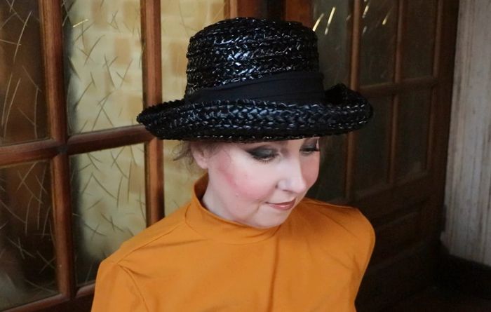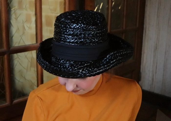 Chapeau noir de paille brillant vernis - photo numéro 6