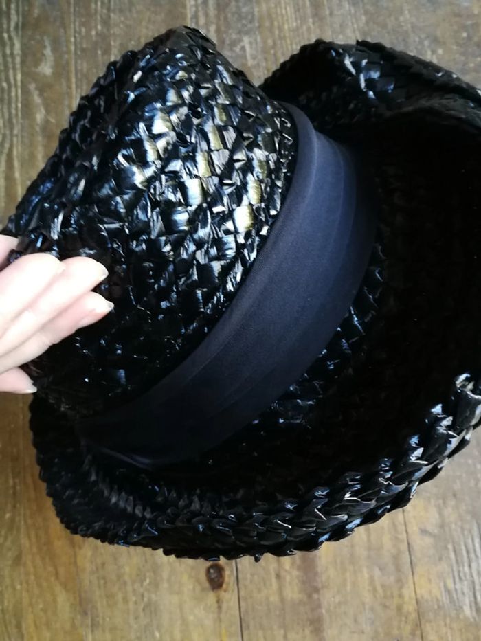 Chapeau noir de paille brillant vernis - photo numéro 1