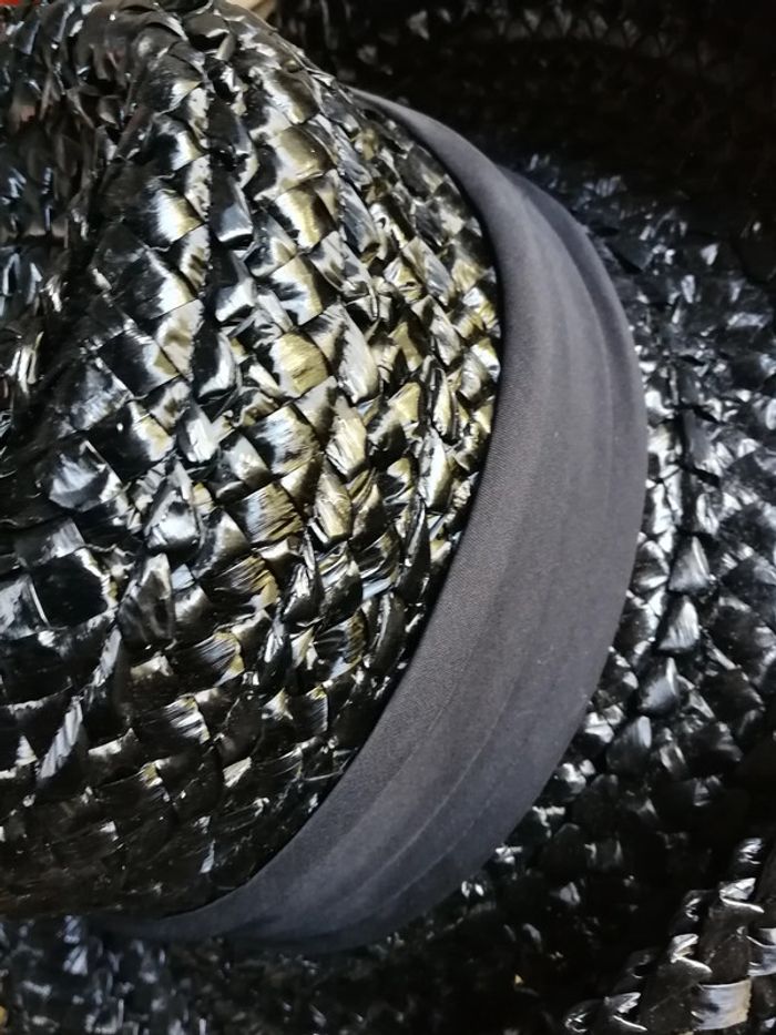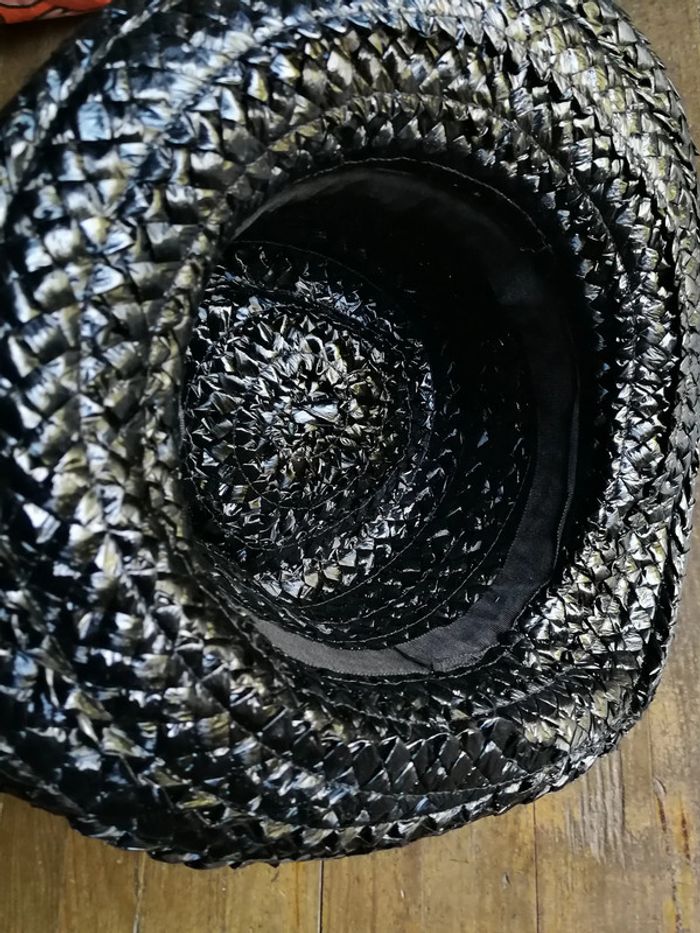 Chapeau noir de paille brillant vernis - photo numéro 5