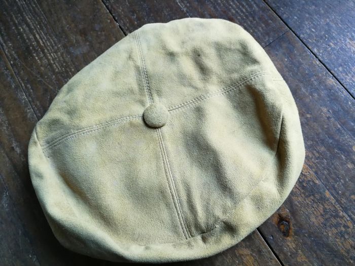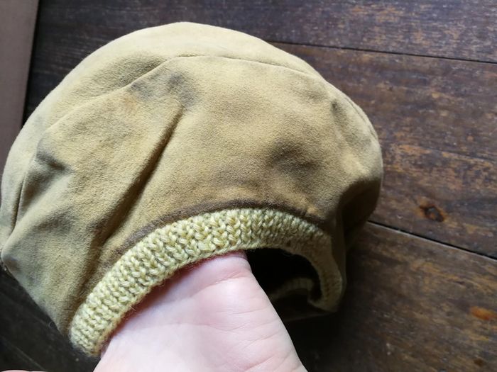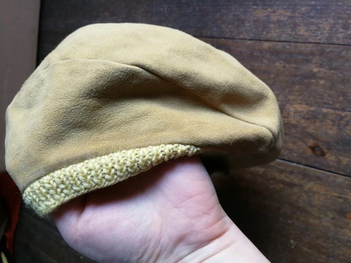 Béret beige en daim ou simili cuir, je ne sais pas exactement ce que c'est comme matière ni la taille, car aucune étiquette, consultez donc bien les mesures ci dessous. Le béret est en bon état général, avec du tricot, sans doublure. Il est de très petite taille. Mesures : Hauteur : 9-14 cm Tour de tête intérieur : 51 cm Diamètre extérieur : 20 cm Poids : 41 g #beretjaune #beret #beretendaim #berettaille51cm #beretpetitetaille #beretenfant