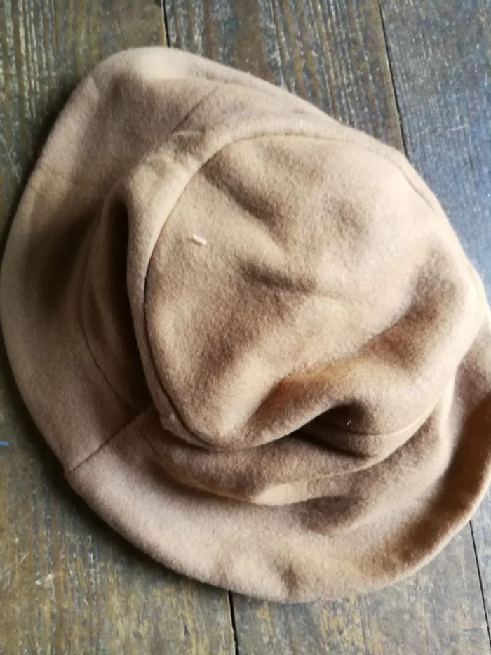 Bob beige à l'extérieur et crème à l'intérieur en tissu polaire, en très bon état. Vintage. Mesures : Hauteur : 14 cm Diamètre extérieur : 80 cm Diamètre intérieur : 61 cm Poids : 72 g #bobbeige #bobvintage #chapeaubeige #chapeauvintage