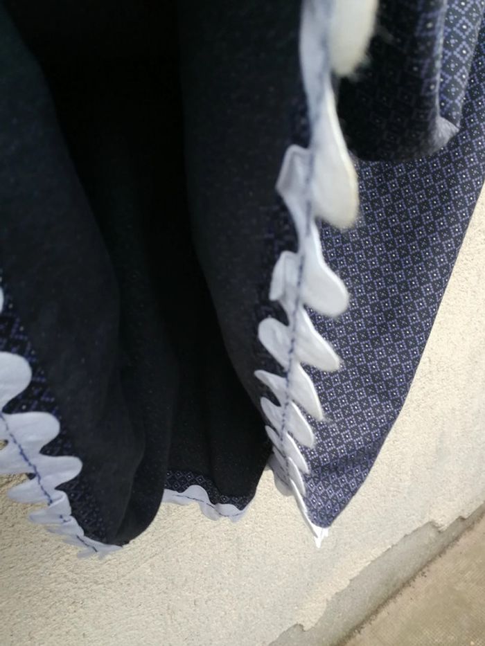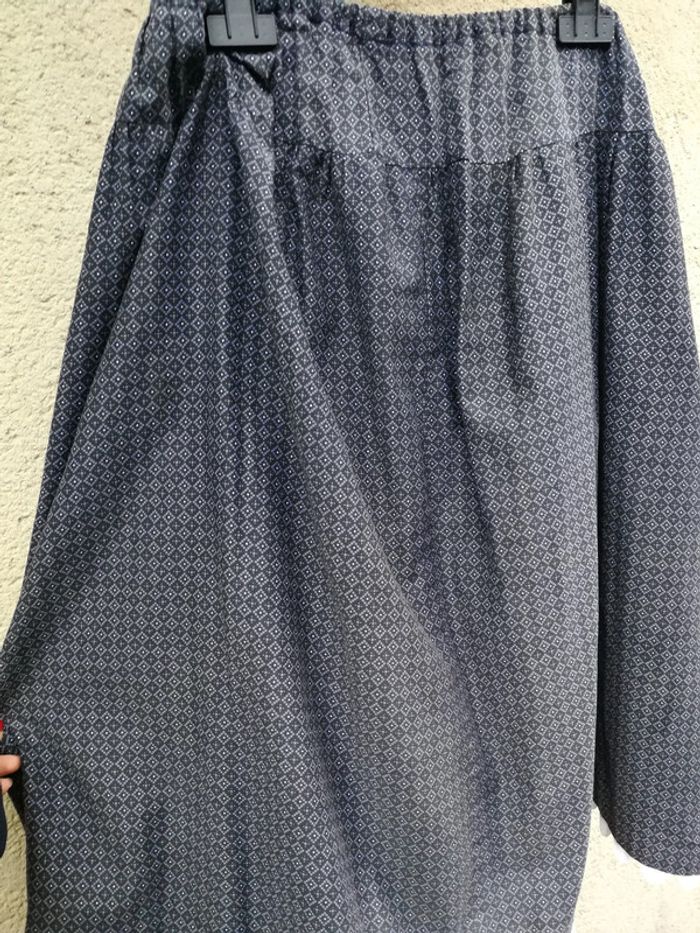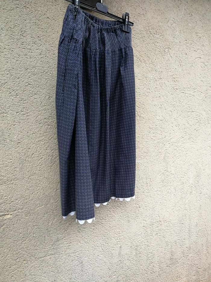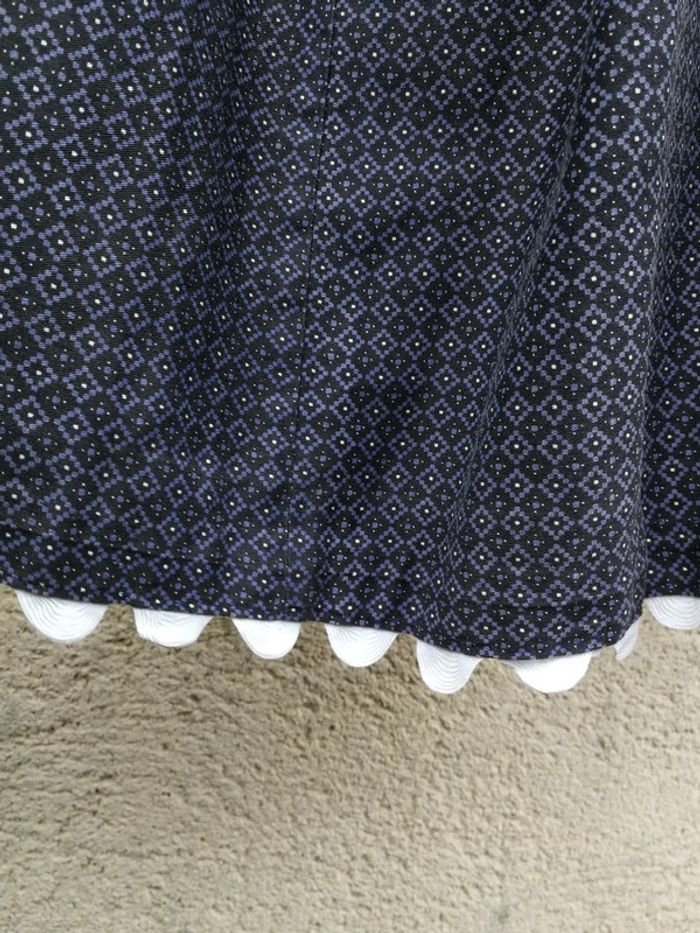 Jupe de coton imprimé géométrique, vintage, en bon état général, élastique à la ceinture est assez lache, peut être à changer, une toute petite tache sur le ruban blanc en bas de la jupe. La jupe est en coton noir avec imprimés géométriques violet et jaune, le ruban blanc en bas de la jupe, avec la fermeture éclair. La jupe est assez large et évasée. Il n'y a pas d'étiquette, je pense que c'est la taille 42, je vous invite à quand même consulter les mesures ci dessous : Longueur : 71 cm Tour de taille non étiré : 82 cm Poids : 250 g #jupeimprimée #jupeimprimegeometriques #jupecoton #jupetaille42 #jupevintage #jupeevasee