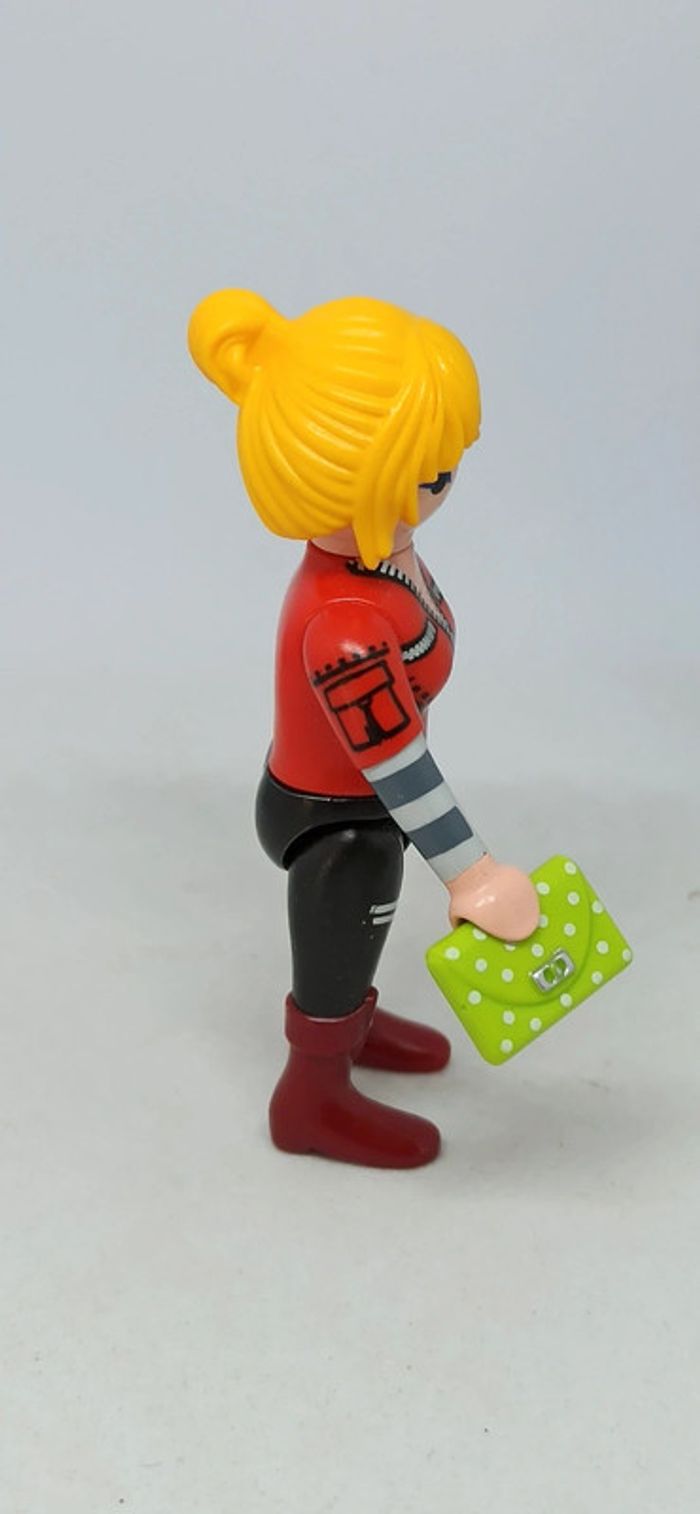 Femme avec blouson rouge et sac à main vert playmobil - photo numéro 3