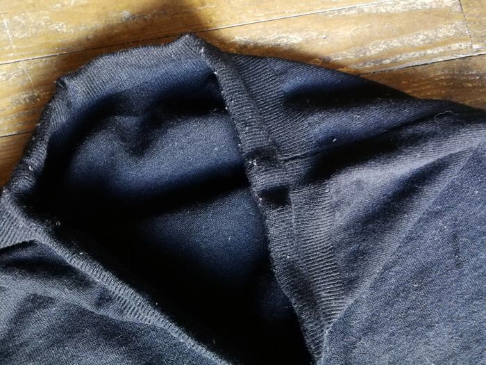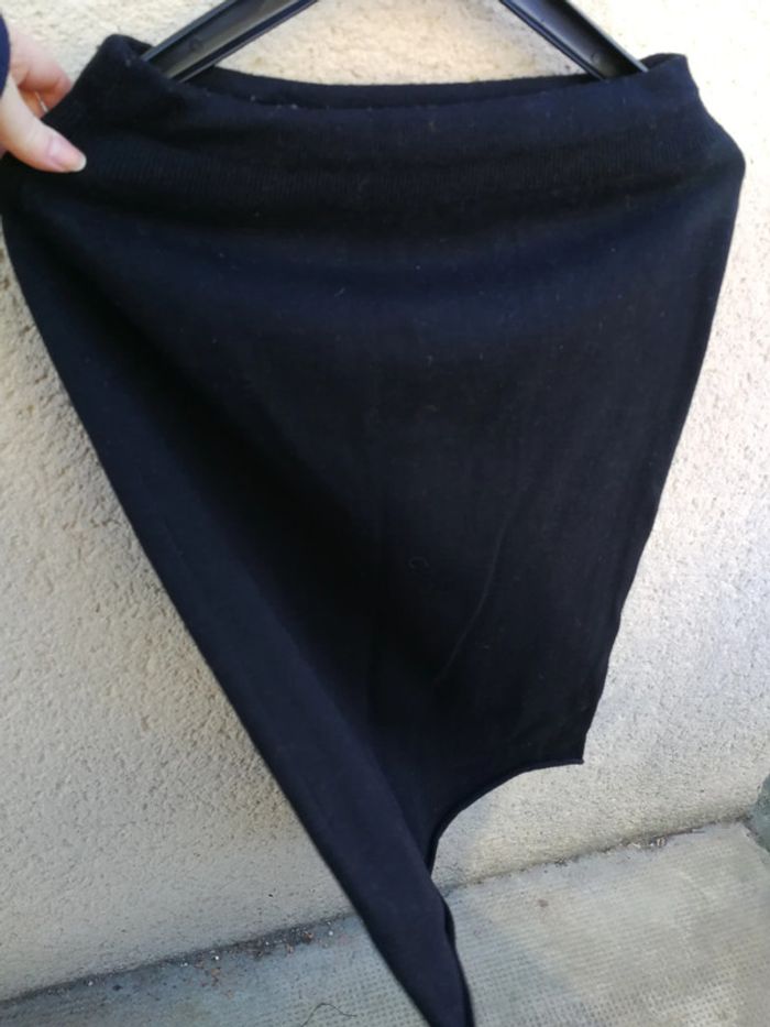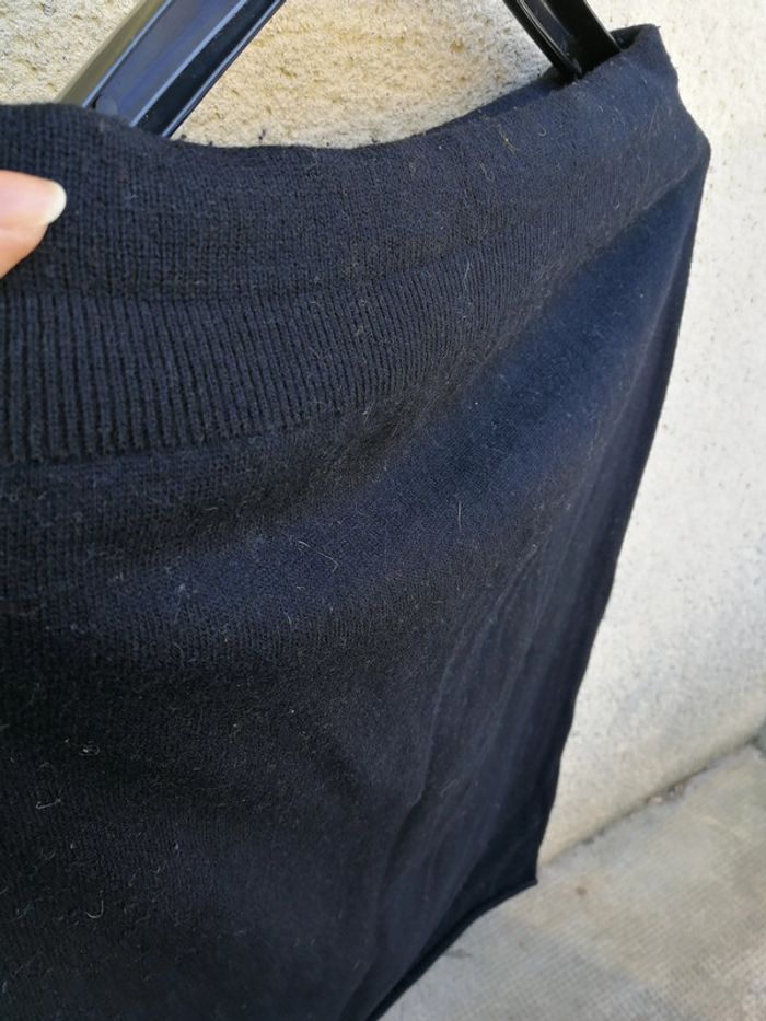 Jupe noire droite mi-longue, en laine, probablement, plus d'étiquette, le bord qui s'enroule, c'est le modèle qui veut ça. La taille, marquée 44, mais je vous conseille de regarder les mesures ci dessous. C'est une jupe droite en bon état, quelques peluches, tient chaud. Mesures : Longueur : 71 cm Largeur à plat : 51 cm Tour de taille : 74 cm (non étiré) Poids : 350 g #jupedelaine #jupenoire #jupetaille44 #jupedroite