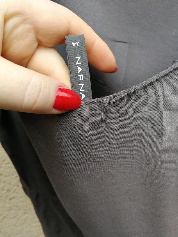 Robe grise coupe princesse Naf Naf, taille 34 (XS), en très bonne état, comme neuf ! Jolie robe évasé en tissu gris anthracite fluide 100% viscose avec la doublure 100% viscose aussi. La robe est cintrée à la taille, jupe évasé avec quelques fronces, col bateau, dos un peu plus creusé que le devant, fermeture éclair sur le côté gauche. Merci de consulter les mesures avant tout achat, les retours ne sont pas acceptés. Mesures : Longueur depuis le devant : 89 cm Longueur depuis le dos (plus creusé à l'encolure ) : 77,5 cm Tour de taille : 65 cm Longueur de fermeture éclair : 31 cm Tour d'emmenchure : 45 cm Poids : 170 g #robetaille34 #robe34 #robenafnaf #robeprincesse #robecintrée #robegrise #robegrisanthracite #robeevasée #robemilongue #robebrillante #robefluide