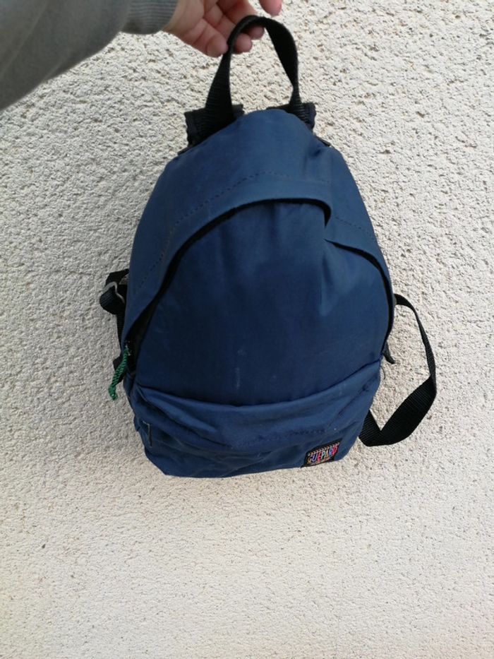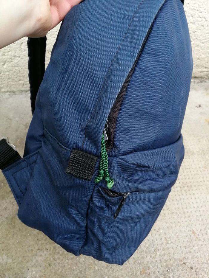 Sac à dos bleu marine, plastifié à l'intérieur, une poche à zip à l'extérieur, se ferme par fermeture éclair (les languettes sont cassées et réparées par les lacets) a les bretelles reglables, le sac est en bon état général, au dos étiquette plastifiée notée Guepard, sur la poche étiquette City bag Collection Guepard. Toutes les fermetures sont fonctionnelles. Mesures : Hauteur : 28 cm Largeur : 24 cm Profondeur : 8 cm Poids : 270 g #sacadosblemarine #sacados #sacadosguepard