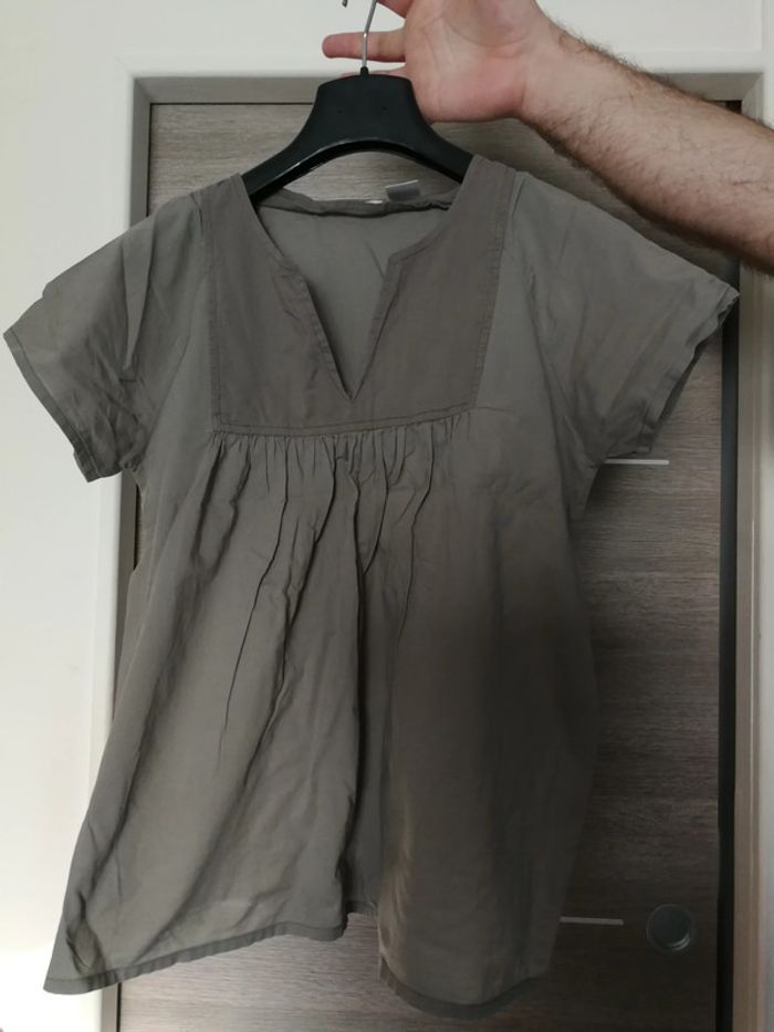 Blouse manches courtes vert kaki en coton - photo numéro 1