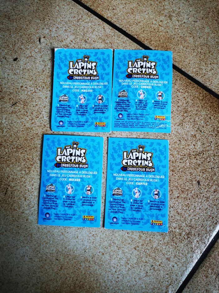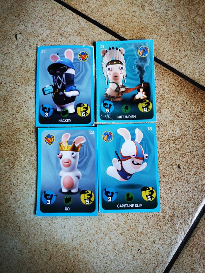 Cartes lapins crétins lot de 4, bon état général, quelques marques sont présentes sur deux cartes (voir les photos). J'ai les numéros 18, 21, 23, 33. Je les vends en lot et ne les dissocie pas; le poids du lot fait 3 g . Envoi en lettre suivie. #cartelapins #lapinscretins #carteslapinscretins