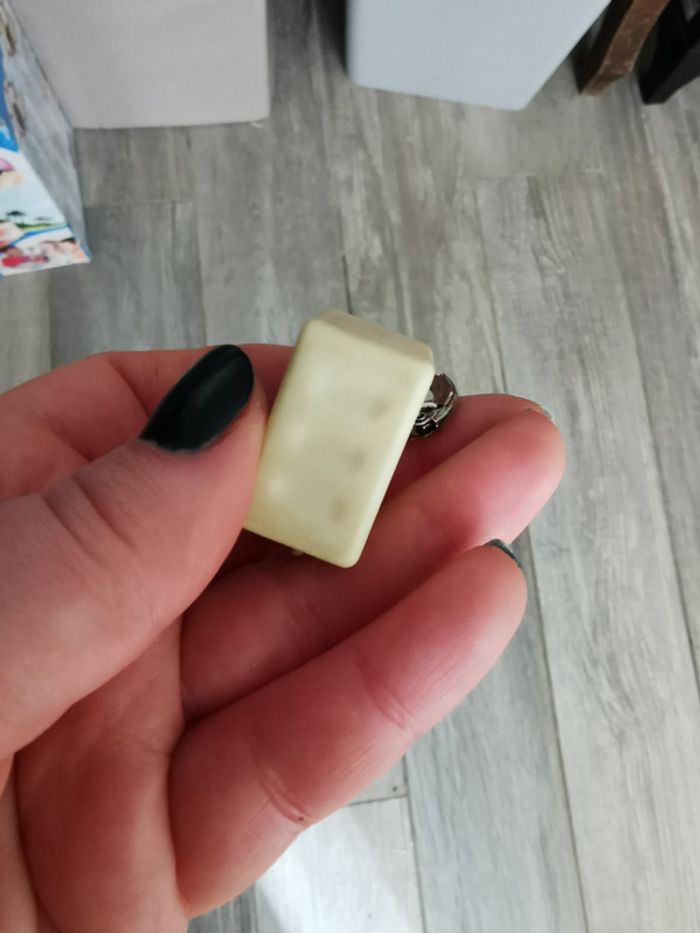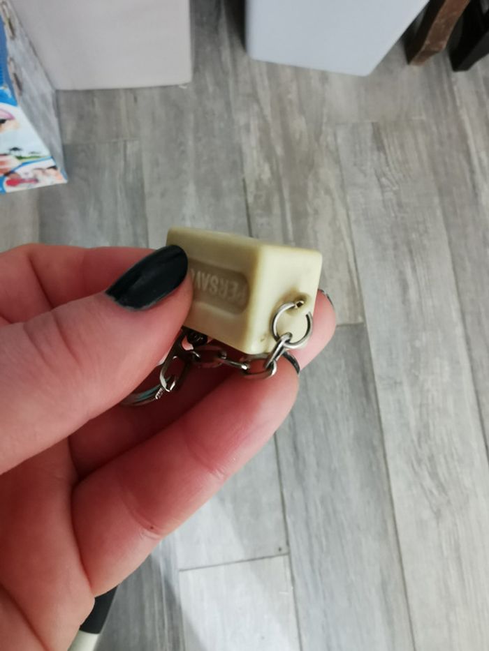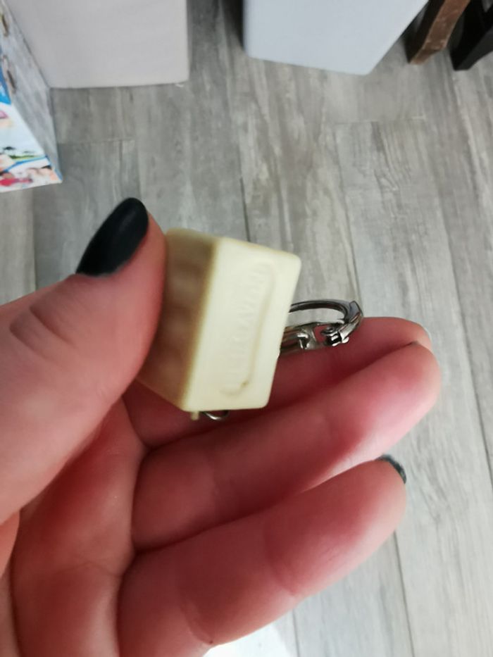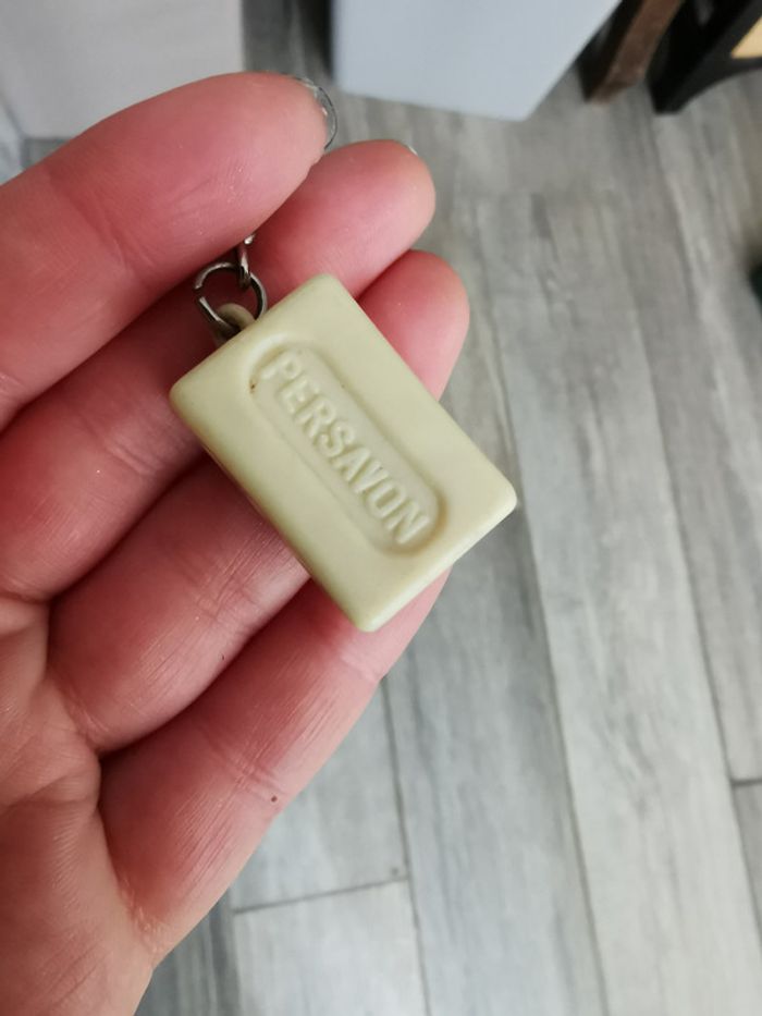 Breloque/porte clé persavon, breloque sous forme de pain de savon, ancien, vintage des années 60. Taille 26x15x16 mm, longueur total 8 cm. Présente quelques frottement du à son âge. Poids 10 g #breloquevintage #porteclesavon #breloqusavon #porteclévintage #breloquepersavon