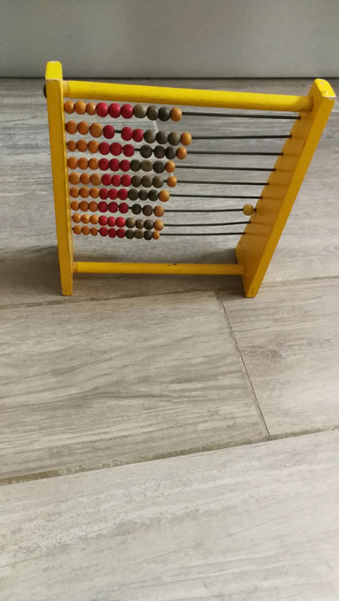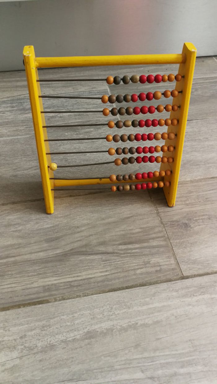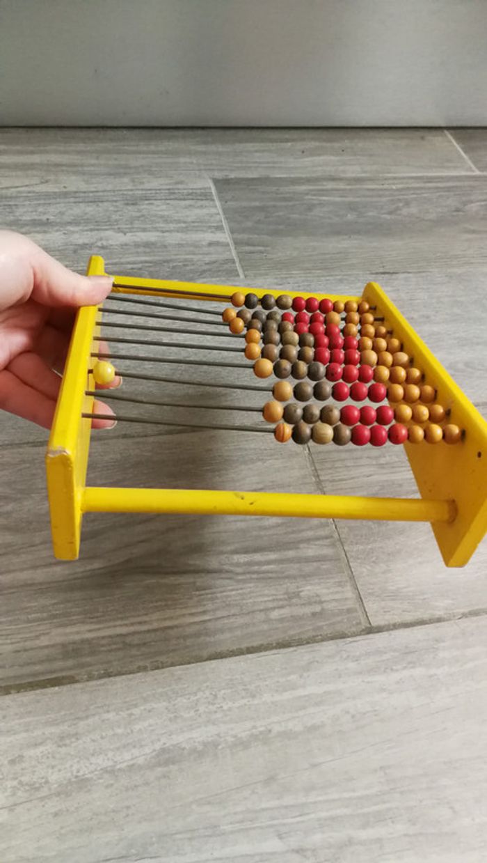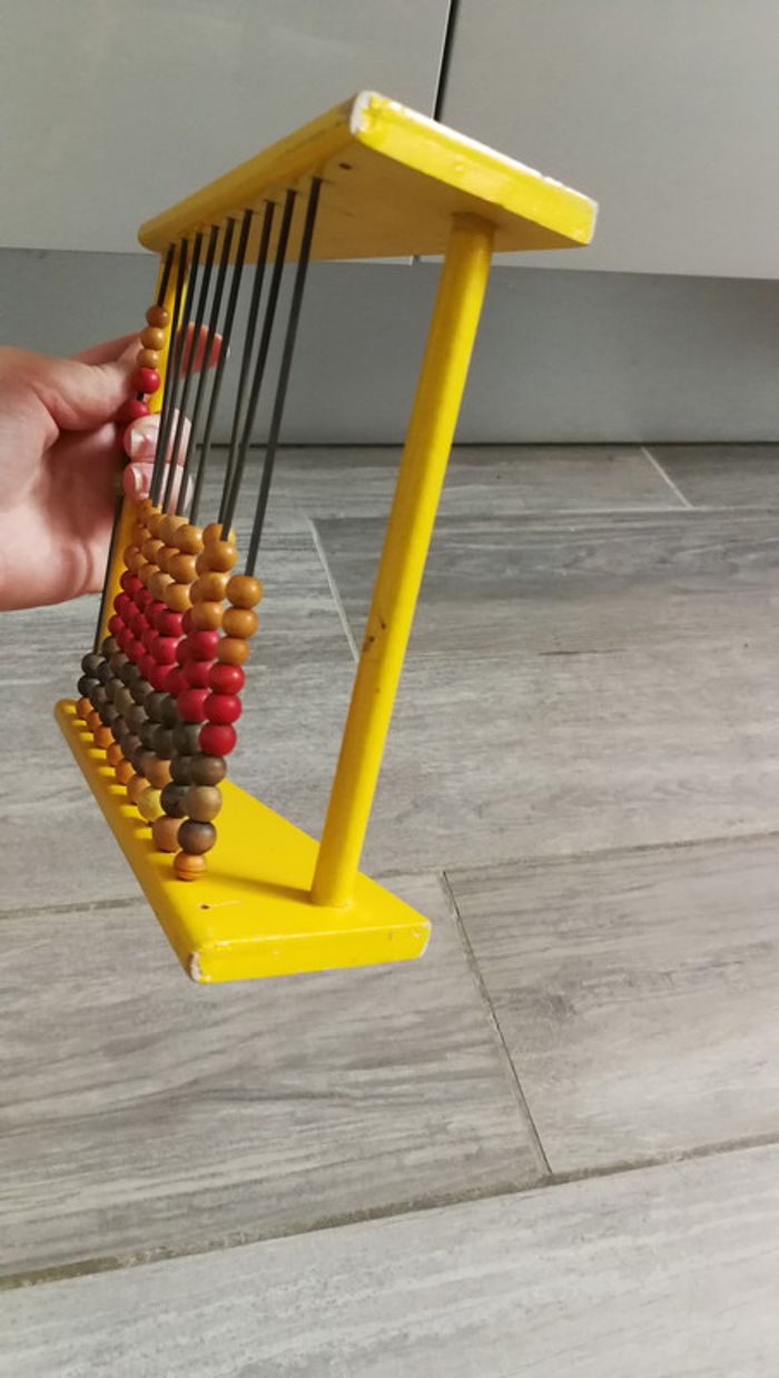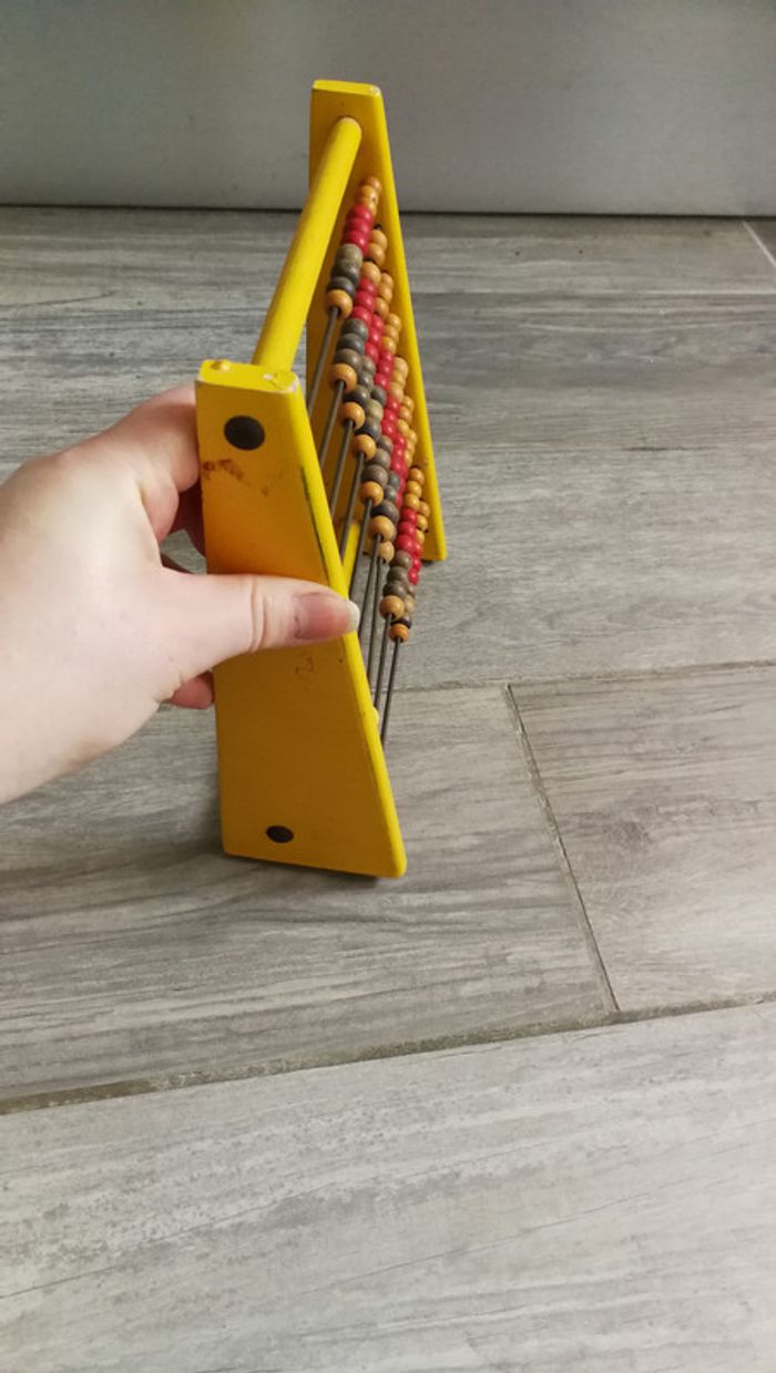 Boulier ancien jouet en bois, probablement années 1960/1970. Très joli jouet, les tiges 3 du bas et 1 en haut sont légèrement tordues, quelques traces de peinture sur le côté, Si non en très bon état pour son age, le prix comprends ses défauts. Mesures : Hauteur : 20 cm Largeur : 18 cm Profondeur : 6.5 cm Poids : 220 gr Une fois le colis expédié le numéro de suivi vous sera envoyé. Du moment que le colis est remis au service choisi mondial relay ou la poste je ne me porte plus responsable des pertes ou dégâts causés par ces derniers, merci de les contacter en cas de problème. Je suis un particulier, les colis j'emballe avec un grand soin et ne suis pas responsable des services de livraison une fois le colis déposé . Merci de votre compréhension. #boulier #bois #jouetbois #collectionclairecamay #jouetclairecamay #boulierancien #joeutancien #vintage