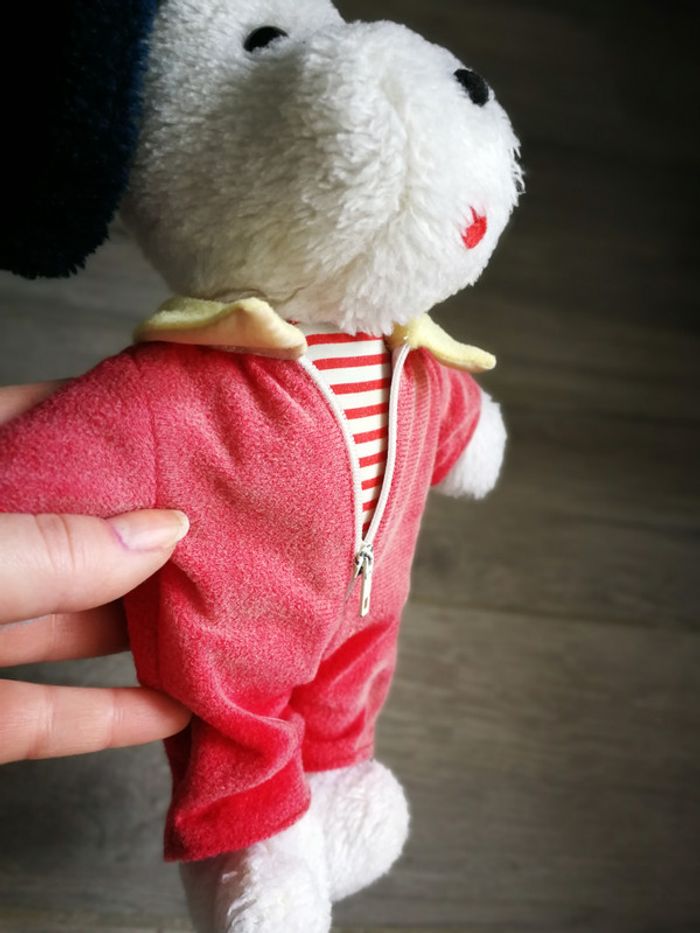 Peluche snoopy 28 x 18 cm, usé, l'habit est décoloré par le soleil devant et pas derrière. On peut l'enlever et il sera en meilleur état. #peluchechien #peluchesnoopy #pelucheclairecamay #enfantclairecamay #collectionclairecamay #petitprix #4eurosclairecamay #ancien