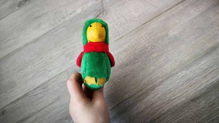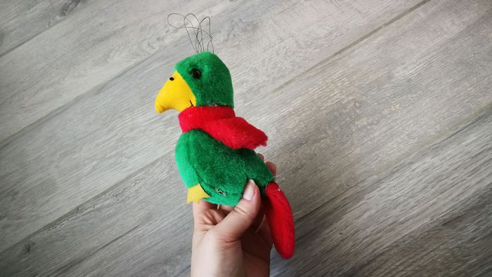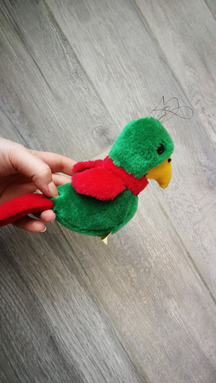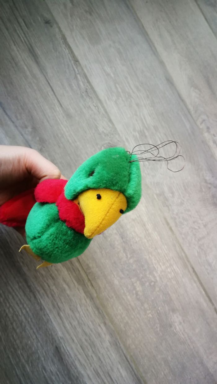 Peluche perroquet vert 14 cm de hauteur. Bon état général. #pelucheverte #pelucheperroquet #perroquet #pelucheoiseau