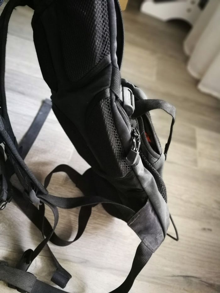 Sac à dos noir travel bags. Sac à dos d'occasion pour le sport cyclisme, alpinisme. C'est un sac à dos long et fin avec plein de poches et de renforcements au dos. La taille : hauteur 42 cm, largeur 20 cm, profondeur près de 15 cm. Il est un peu poussiéreux donc à nettoyer à l'extérieur et l'intérieur est propre. #sacàdos #sacnoir #sport #cyclisme #alpinisme #sactravelbags #sacvelo #sacdecourses #sacsport