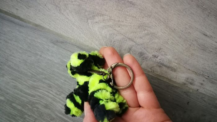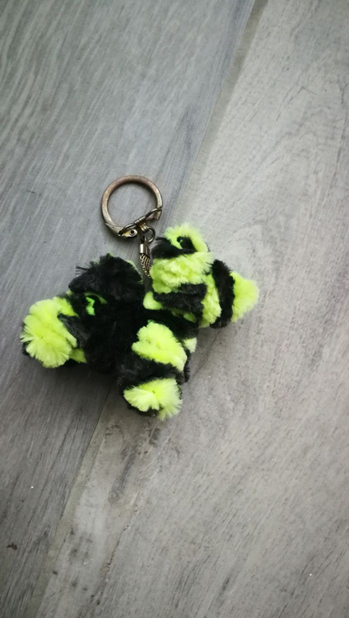 Porte clés chien peluche noir et jaune fluo taille 6 cm. Bon état général. #porteclé #porteclef #chien #chienpeluche #chienfluo #fluo #acccrochesac #petitprix #breloquefluo