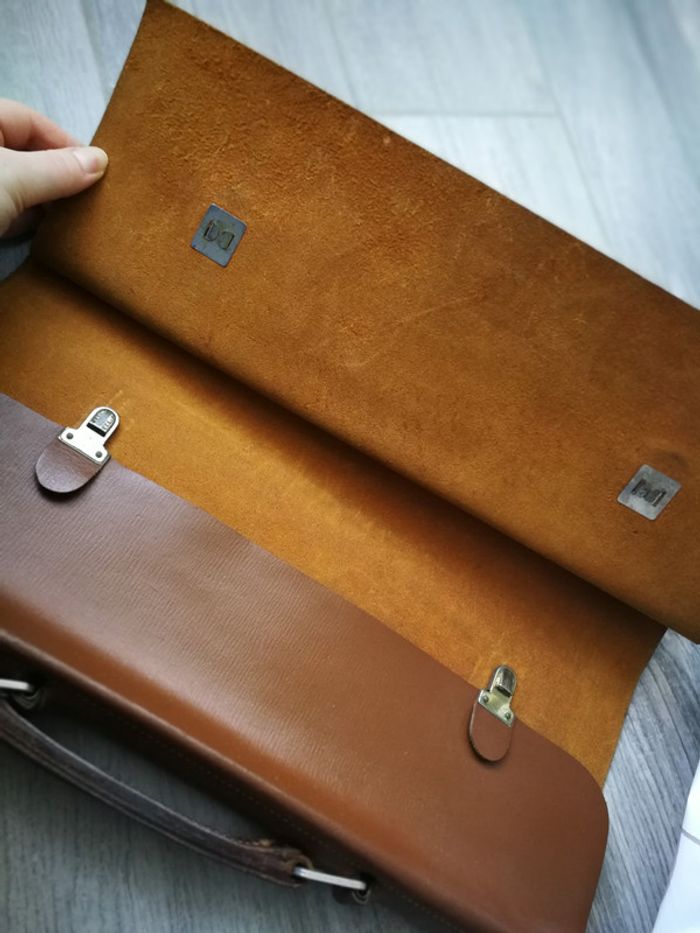 Sac cartable plat transformable en cuir camel - photo numéro 4