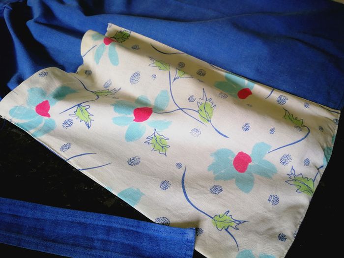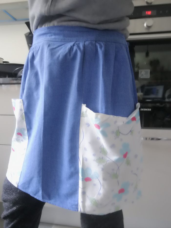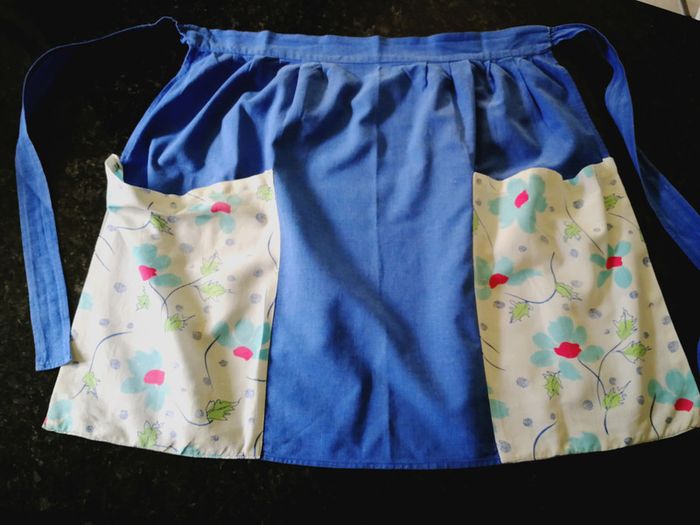 Tablier bleu avec deux grosses poches, occasion - photo numéro 2