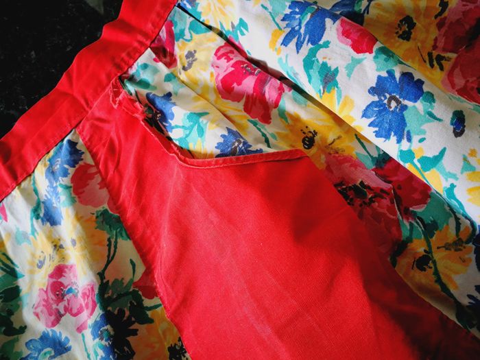 Tablier rouge à fleurs en coton, occasion - photo numéro 3