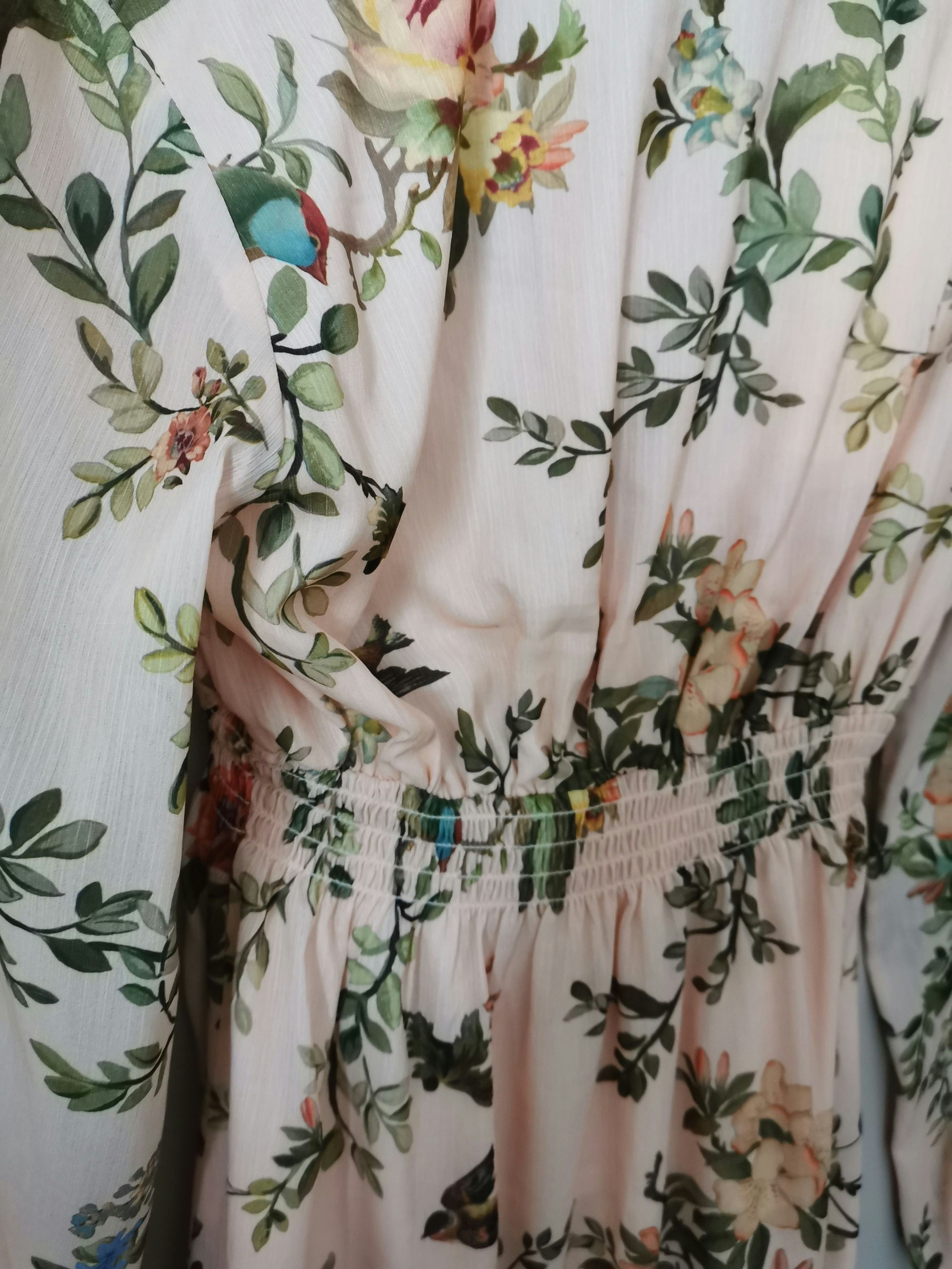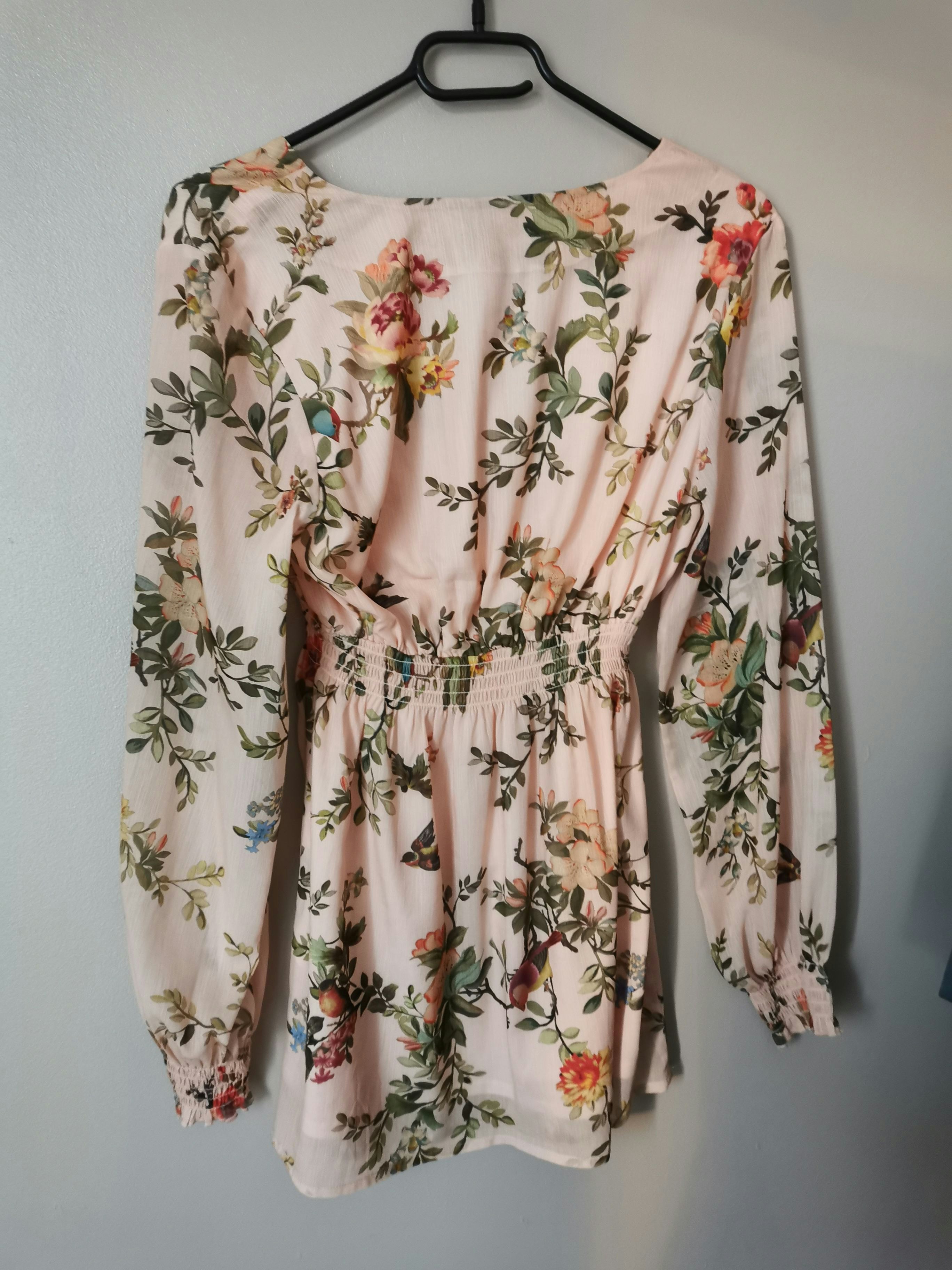 Tunique avec manches longues, matière fluide, col v, motif fleuris, taille s