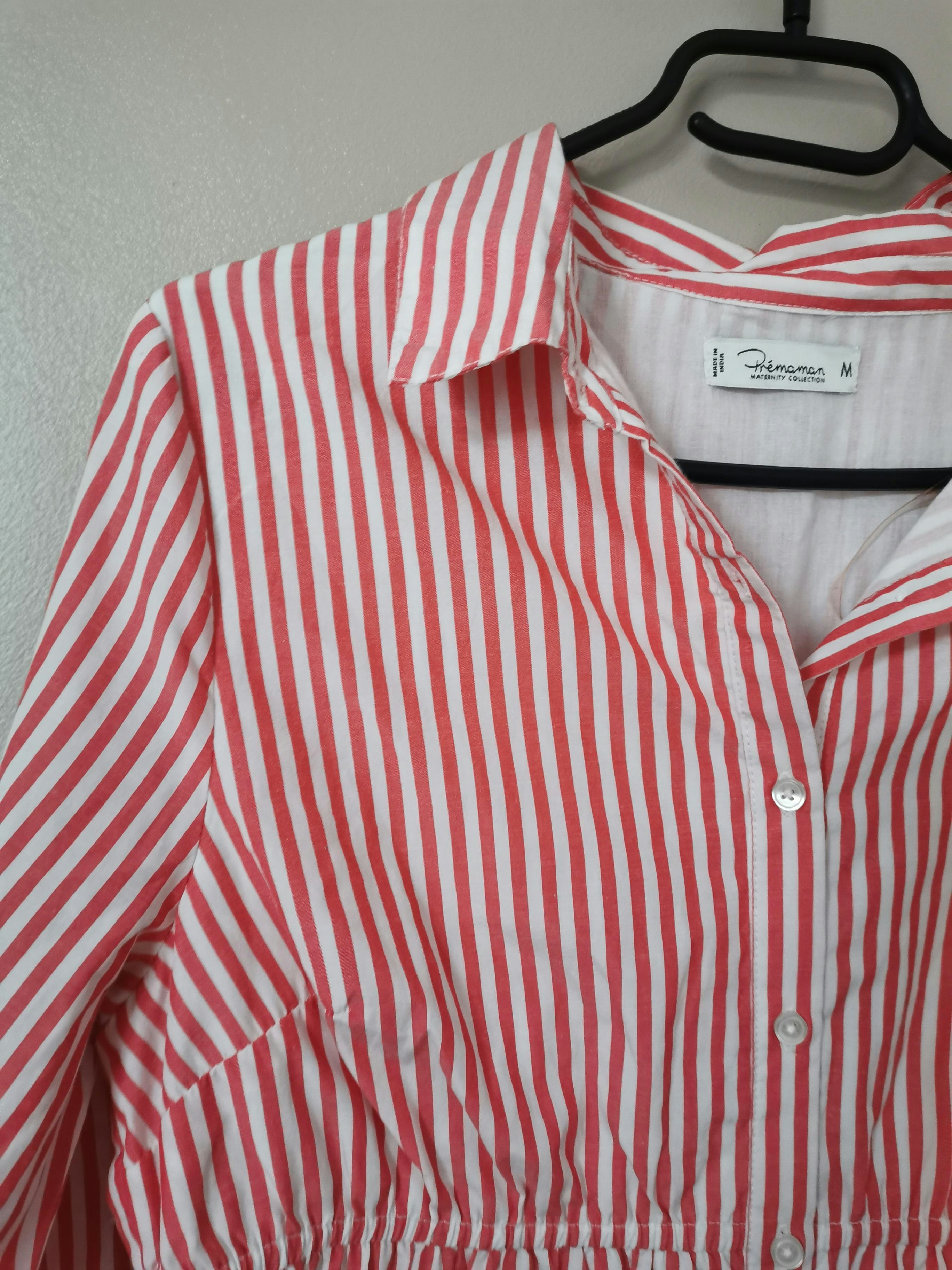 Robe avec rayures rouge et blanche, manches longues, boutons sur le devant parfait pour l'allaitement, taille M #robe #rayures #maternité #enceinte