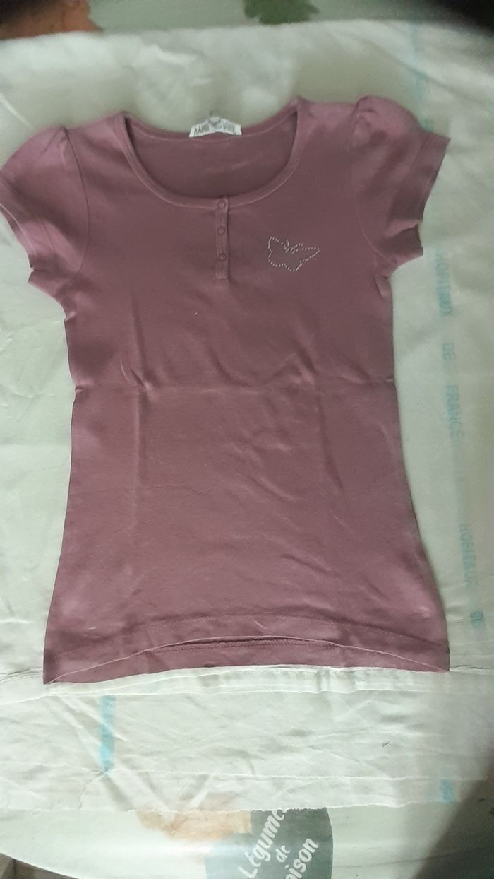 Tee shirt mauve avec motif cœur papillon en strass 8 ans