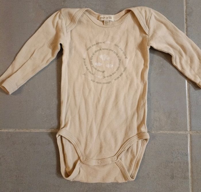 🚨 Lot indissociable ⛔ 71 cm Ce lot est composé de : - 1 bodie beige "je suis sur mon nuage je suis sur mon nuage..." de la marque Grain de blé - 1 bodie blanc à motifs raton-laveur, étoiles ... Kimadi - 1 pyjama rose motif lapin et étoiles Prémaman - 1 collant blanc 9-12 mois - 1 gilet bleu marine liseré pailleté Tape à l'oeil De bon état à très bon état #9moisfillecamilled974