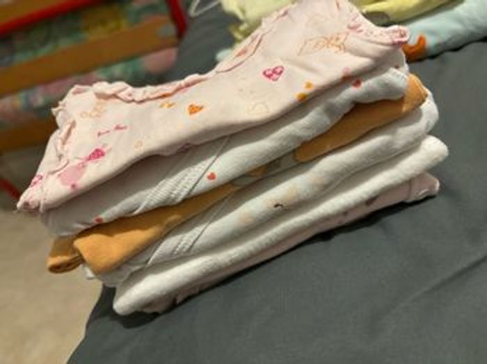 Je vend un lot de vêtements fille taille 1 mois. Il y a plus de quantité mais je ne pouvais pas tout mettre en photo. Me demander plus de photos si vous êtes intéressés. Anaïs🌸