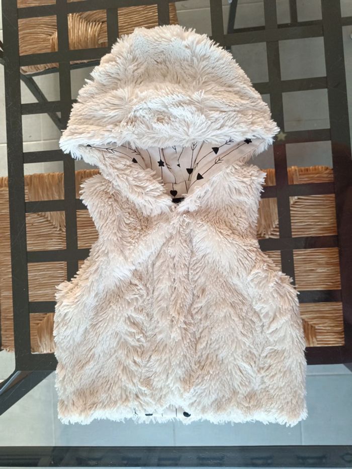 Sans manches avec capuche. Idéal mi-saison. Imitation fourrure. Taille : 24 mois / 83-89 cm. Article sans trou ni tâche. #melody45340bebe24mois