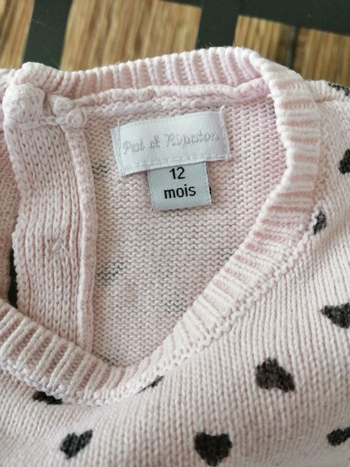 Manches courtes. Dessin : cœurs noirs. Article sans trou, ni tache. #melody45340bebe12mois