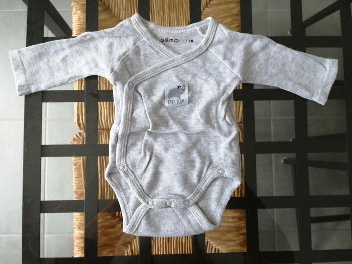 Manches longues. Article sans trou, ni tache. Inscription : baby team #melody45340bebe1mois