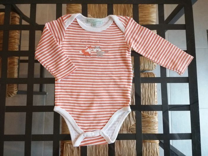 Manches longues. Article sans trou, ni tache. Dessin renard et raton laveur. #melody45340bebe6mois