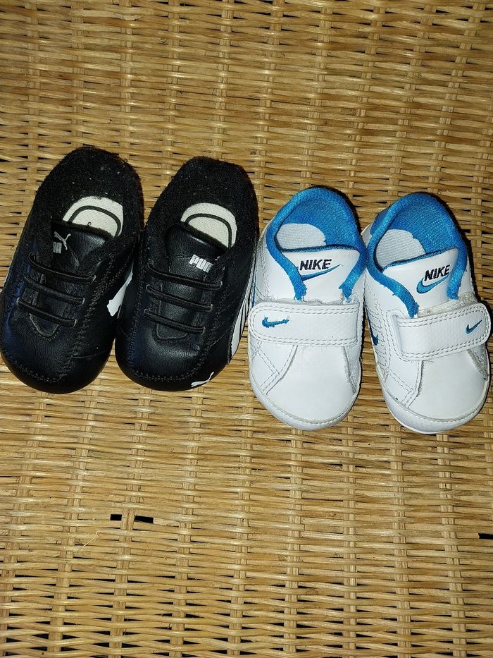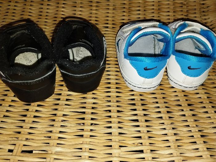 2 paires: -1 Nike à scratchs couleur blanches -1 Puma à lacets élastiques couleur noires