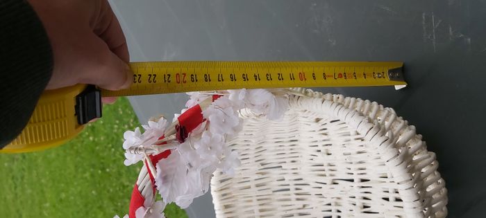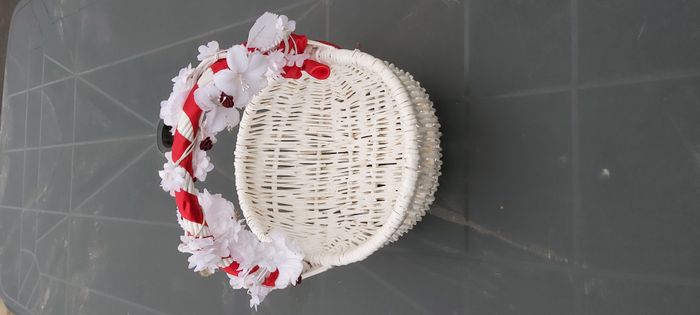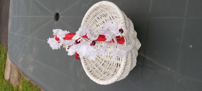 .Panier blanc avec anse Décoration mariage peuvent être retirées Hauteur avec anse 23cm Largeur 20cm x 24cm #carineddideco