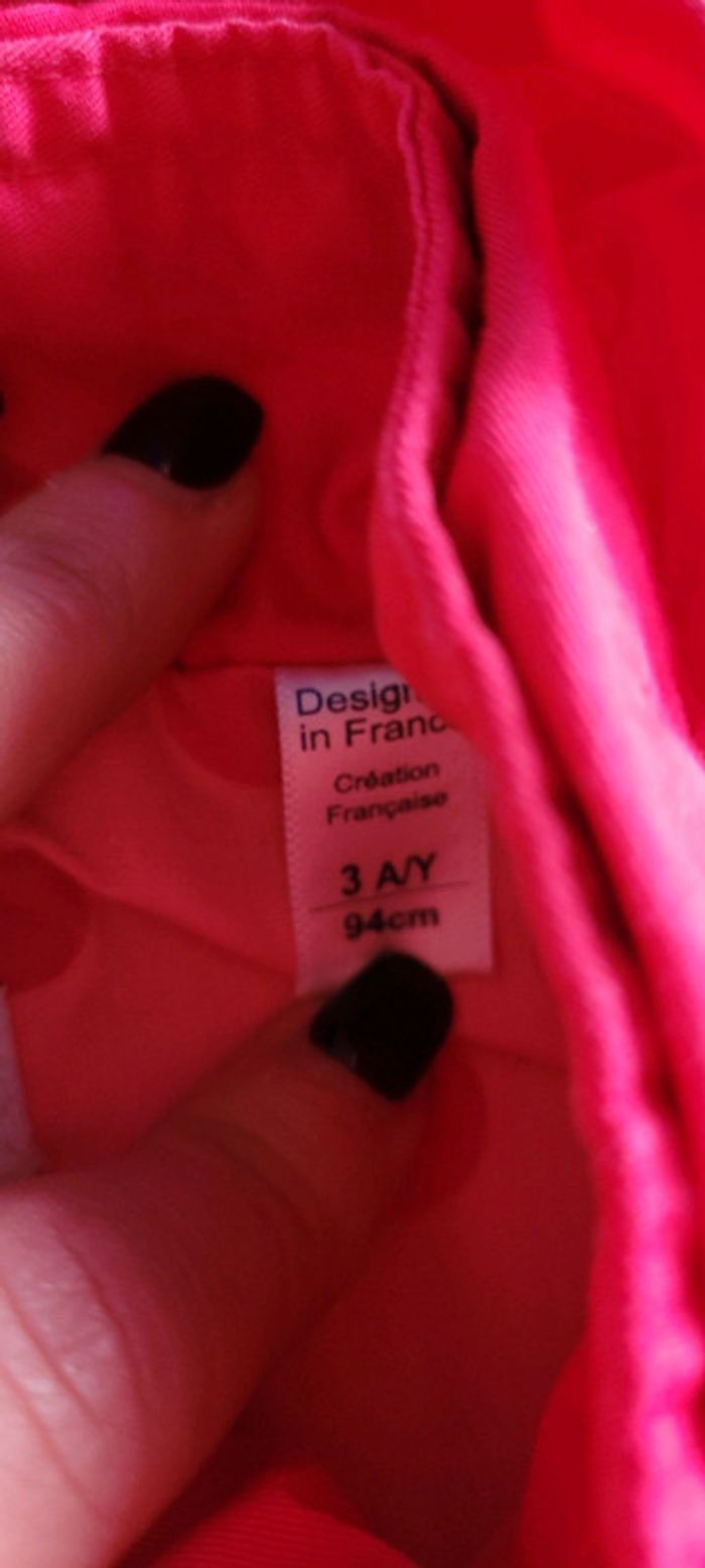 Matière jeans. Rose fushia Petit défaut sur les boutons de manches en photo 94 cm 3 ans #fille3ansnicopey